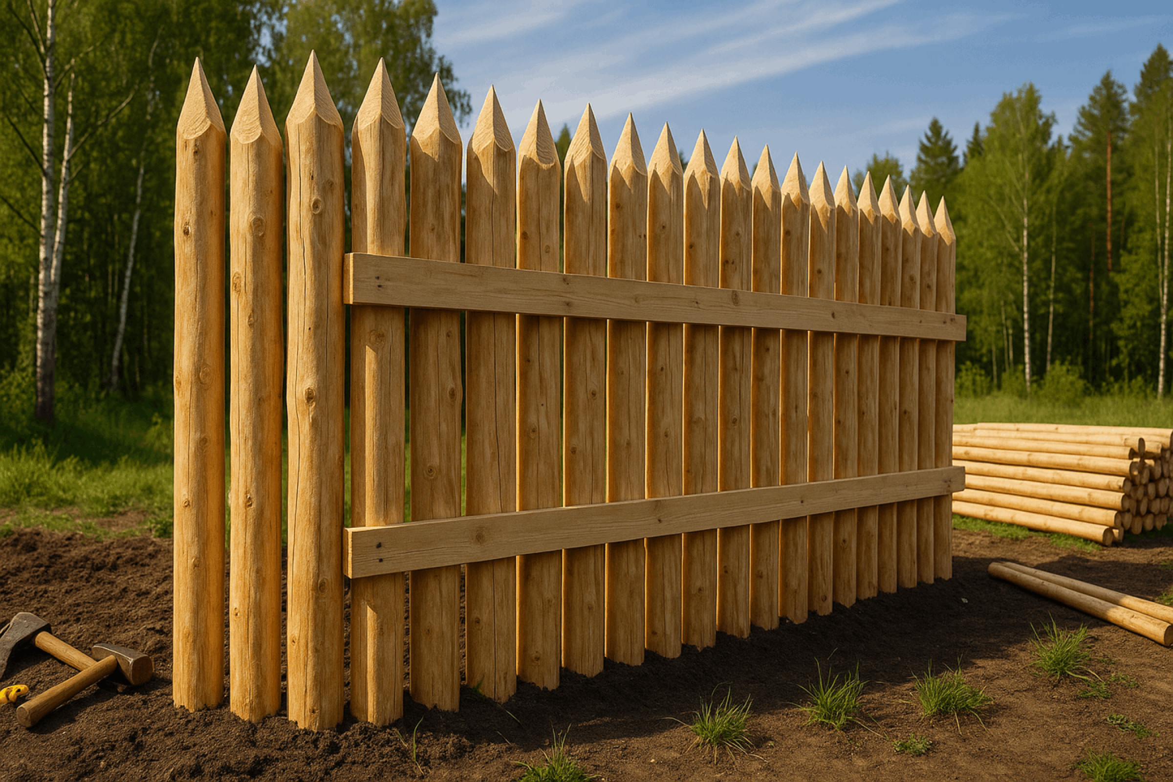 Забор частокол своими руками: от выбора брёвен до последнего гвоздя