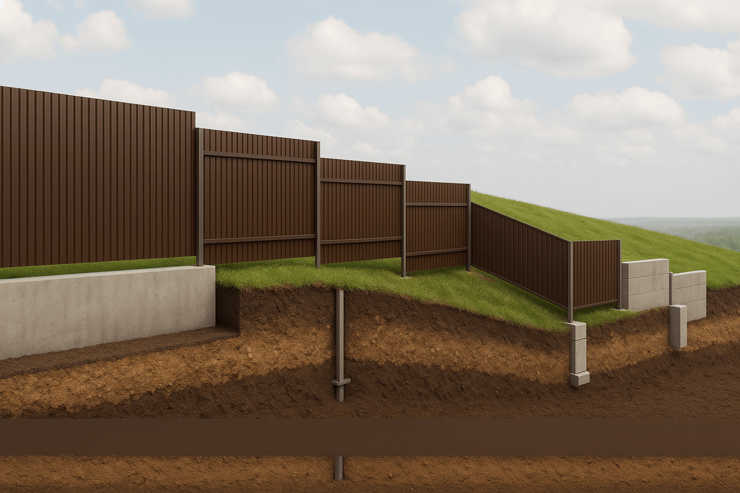 - Фундамент для забора на склоне — три варианта от бюджетного до надёжного