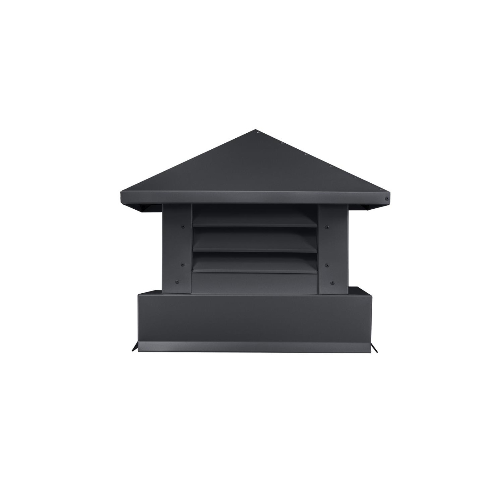 Дымник на трубу "Аэро" 390х390 мм в цвете матовый серый графит (RAL 7024) — это надежное решение для эффективной защиты каминных и вентиляционных труб от неблагоприятных внешних факторов. Благодаря матовому текстурированному покрытию и защитному слою цинка толщиной 25 мкм, изделие сохраняет свой внешний вид и технические свойства до 20 лет.