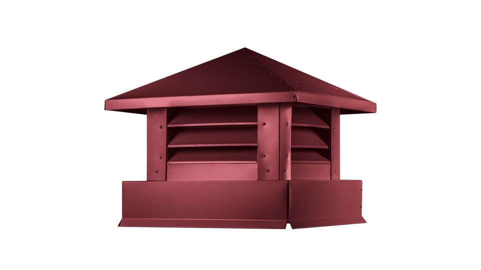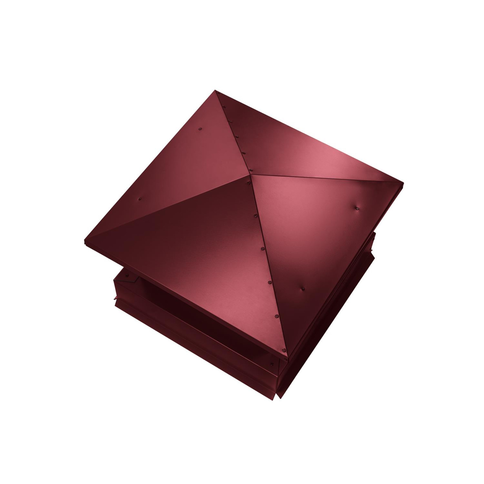 Дымник на трубу Аэро 510х510мм RAL 3005 «Красное вино» — аккуратный колпак классической формы для квадратных и прямоугольных кирпичных дымоходов с посадочным размером по верху около 51?51 см, выполненный из оцинкованной стали с полимерным покрытием полиэстер толщиной 0,45 мм в насыщенном бордовом цвете под кровлю RAL 3005. Надежная защита трубы от осадков, мусора и обмерзания сочетается с аккуратным внешним видом и гарантией на внешний вид 5 лет и на технические характеристики 10 лет.
