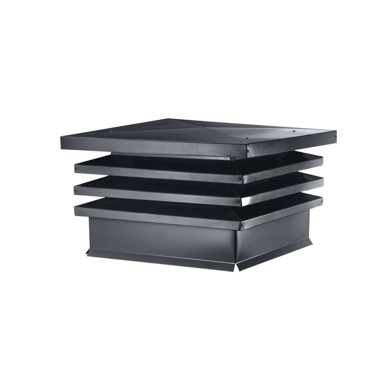 Дымник на трубу «Хай?Тек» с плоской крышей 640?640 мм в цвете RAL 7024 – это готовое решение для тех, кому важно совместить надежную защиту кирпичной трубы с современным, аккуратным внешним видом фасада и кровли. Конструкция рассчитана на стандартные дымоходы и вентканалы в частных домах, коттеджах и банях, а по дизайну вписывается в современные проекты с серой или контрастной кровлей RAL 7024.
