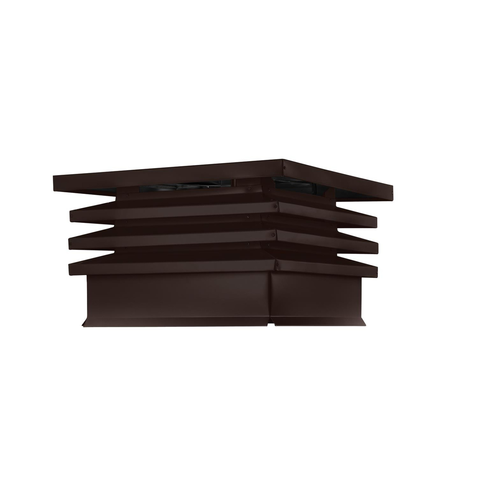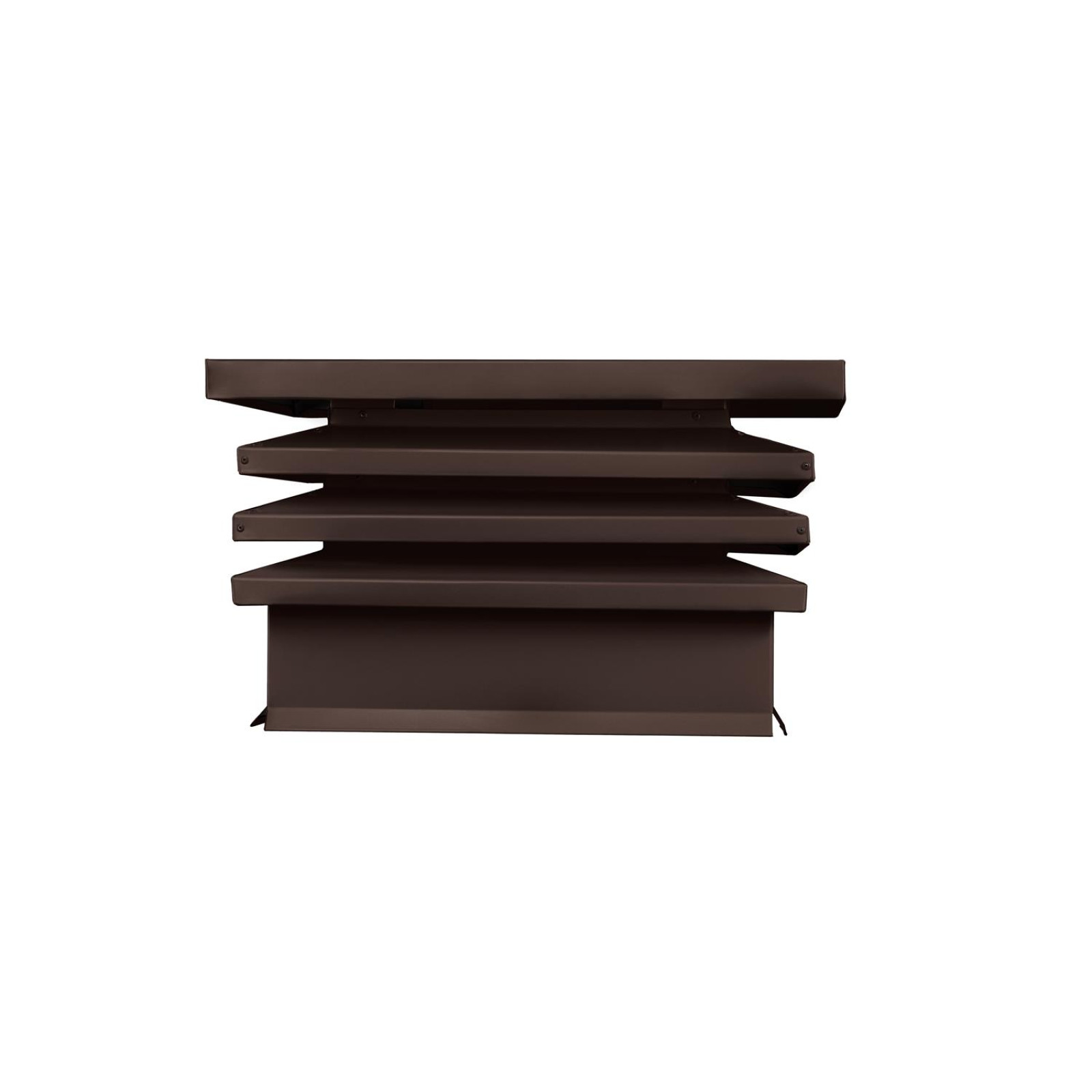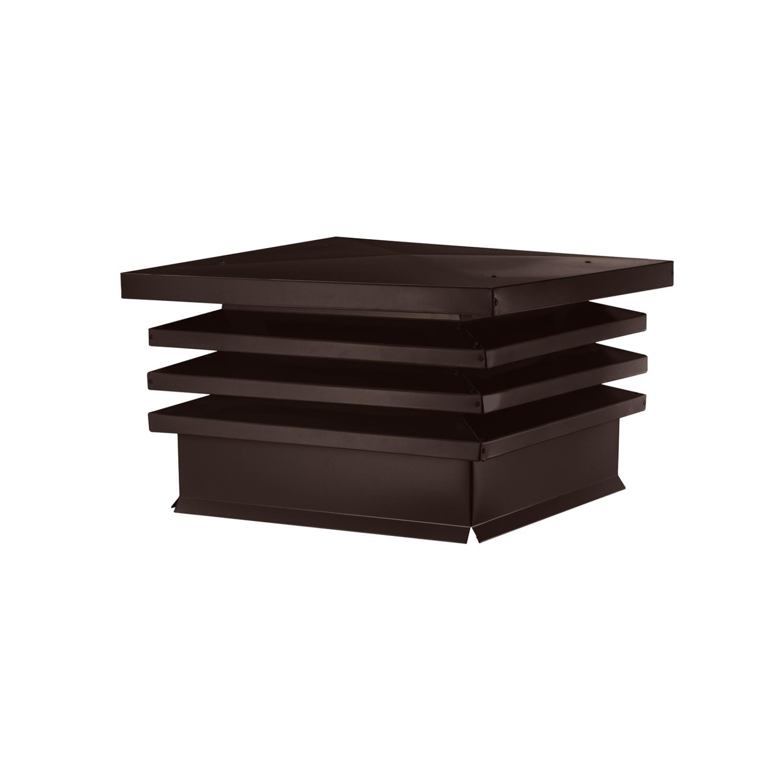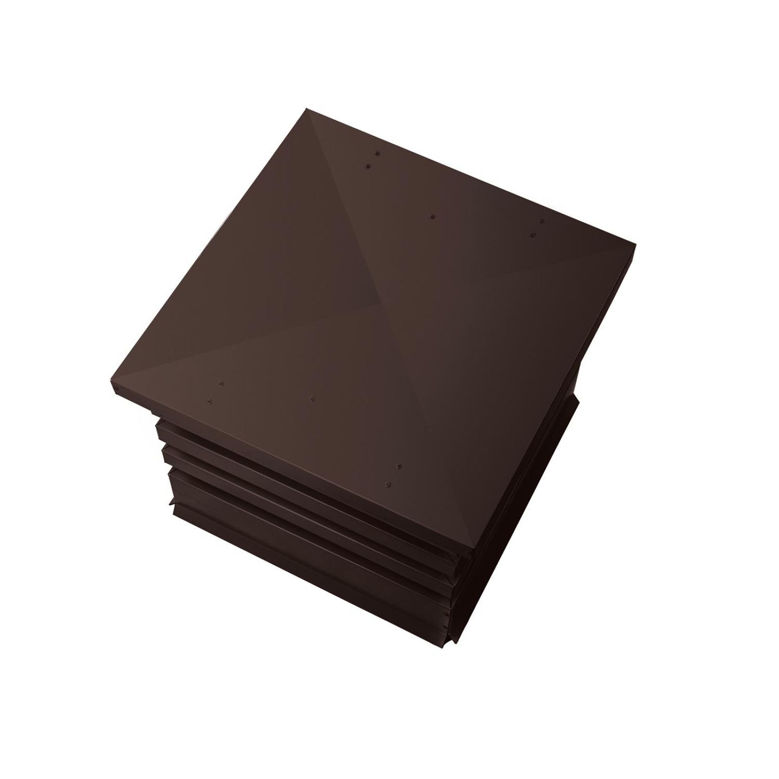 Дымник на трубу Hай Тек с плоской крышей 640х640 мм в матовом шоколадно-коричневом цвете RAL 8017 сочетает в себе надежность защиты и эстетическую привлекательность. Его размер 640х640 мм обеспечивает эффективное перекрытие поверхности дымовой трубы, предотвращая попадание дождя, снега и птичьих гнезд внутрь. Конструкция с плоской крышей действует словно мини-зонт, защищая от осадков, что продлевает срок службы дымохода и снижает необходимость частой чистки.
