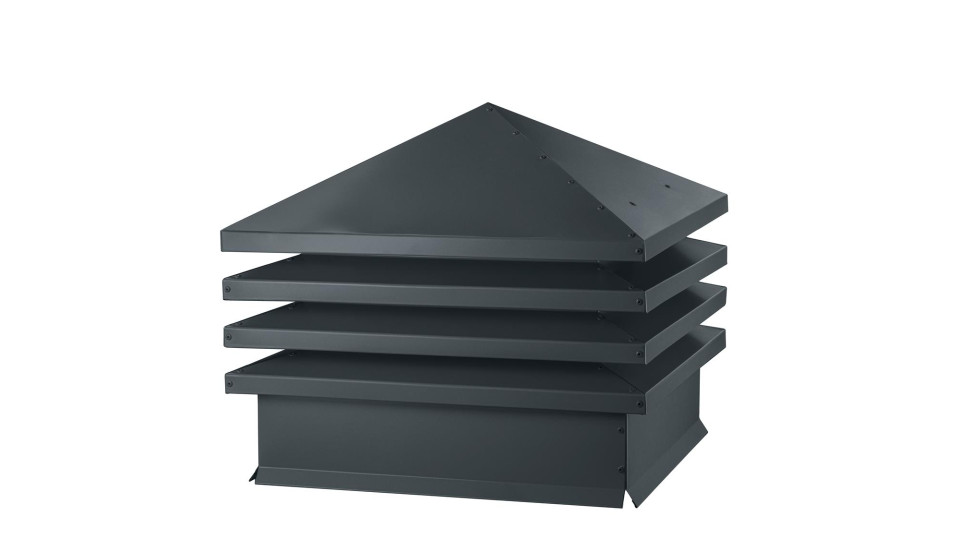 Этот дымник объединяет защиту, функциональность и эстетичный дизайн, изготовлен из высококачественной стали с полиэфирным покрытием и защитным слоем цинка 100-140 г/м2, что обеспечивает стойкость к коррозии и УФ-излучению на долгие годы. Его матовая текстурированная поверхность RAL 7016 отлично впишется в современные архитектурные решения.