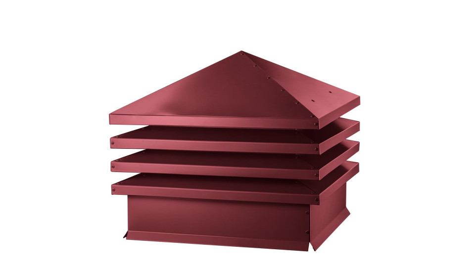 Дымник на трубу Хай-Тек со скатной крышей в цвете "Красное Вино" (RAL 3005) — это надежное и стильное решение для защиты дымохода и вентиляционных труб от погодных воздействий и посторонних предметов. Его основная задача — обеспечить надежную защиту и стабильную тягу, предотвращая попадание осадков, мусора и птиц внутрь трубы.