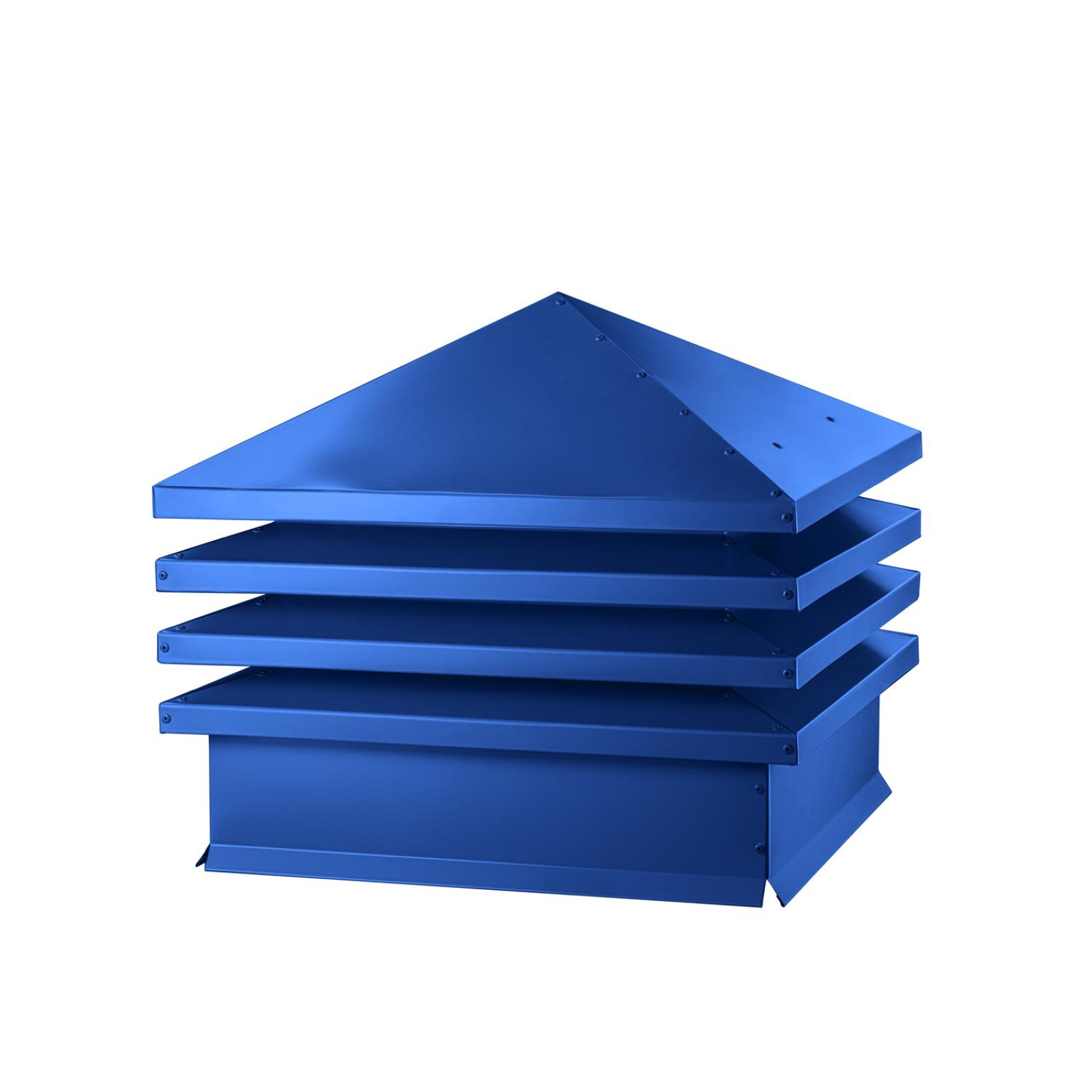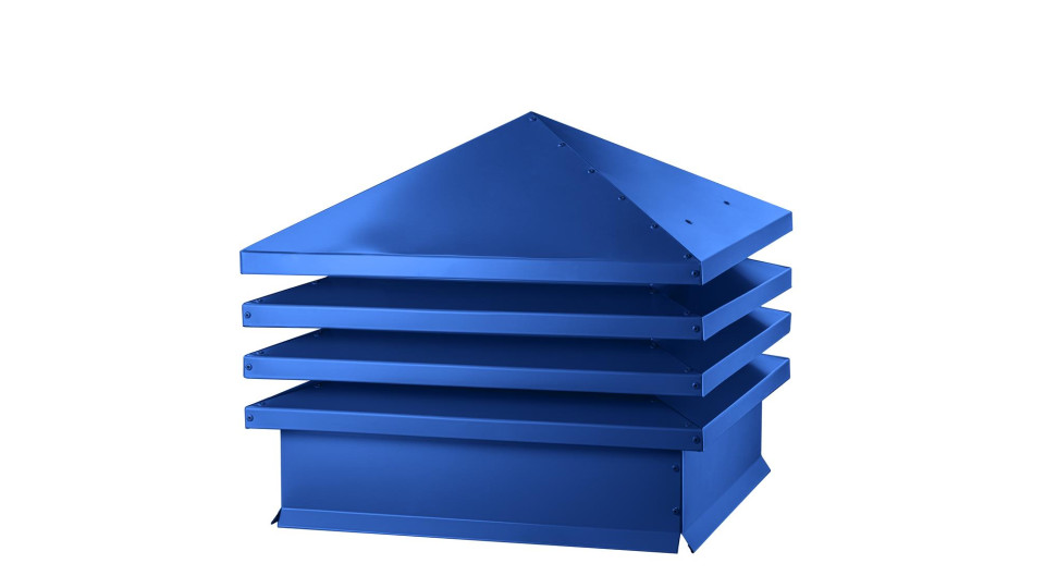 Дымник на трубу Хай-Тек с наклонной крышей 640х640мм RAL 5005 (Сигнальный синий) — это надежное устройство, которое выполняет сразу несколько важных задач для владельцев частных домов, дач и коттеджей. Он защищает дымоход от осадков, улучшает тягу и препятствует попаданию мусора, листьев и птиц внутрь трубы.