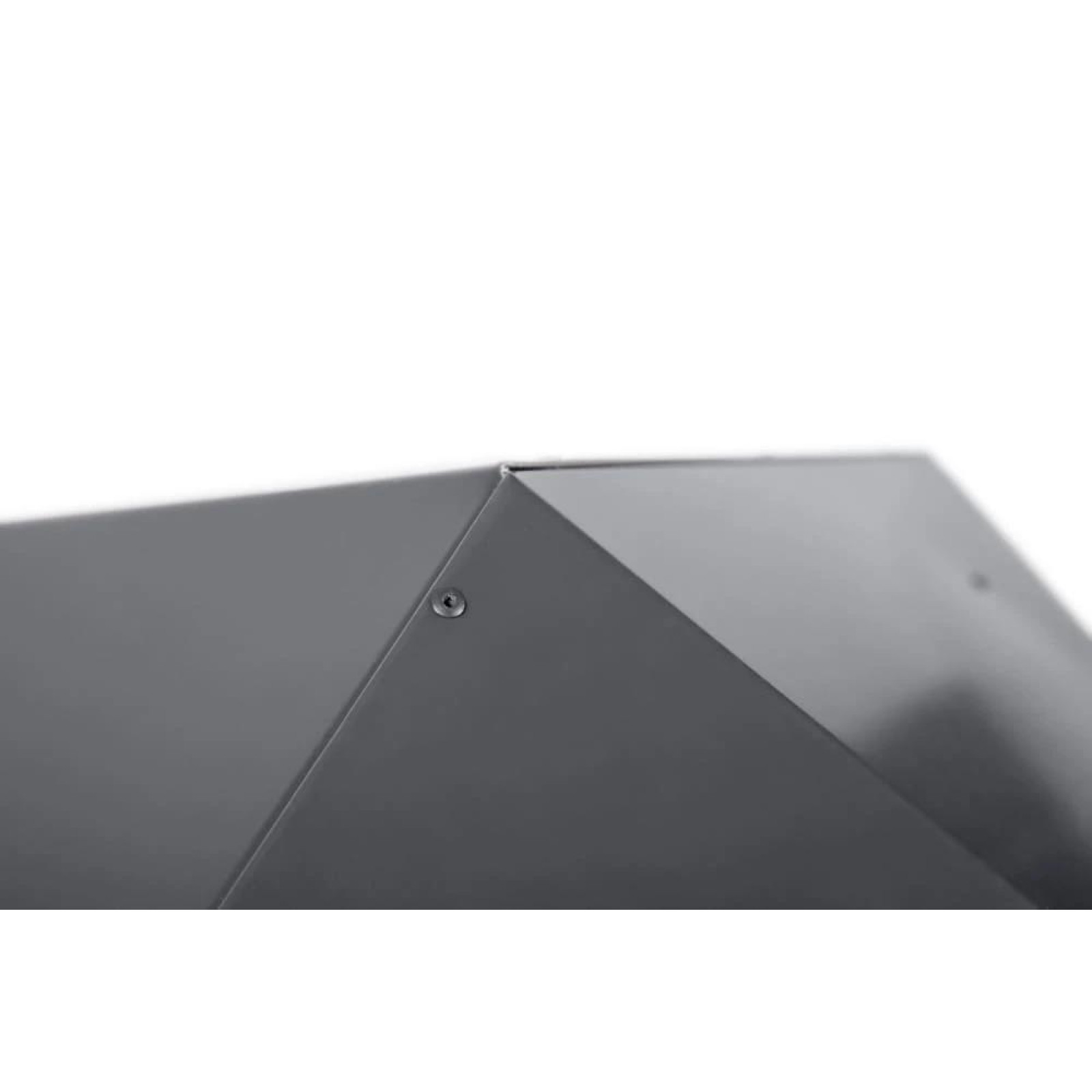 Размер 510х510 мм точно соответствует стандартным кирпичным трубам, покрывая их полностью без зазоров, как идеально подогнанный колпак на чашку. Толщина металла 0,45 мм сочетает легкость (вес около 3 кг) с прочностью, выдерживая снеговую нагрузку до 50 кг/м без деформации. Покрытие Polyester толщиной 20-25 мкм в графитовом оттенке RAL 7024 устойчиво к коррозии и UV-излучению, сохраняя цвет до 15-20 лет, словно вечная серая черепица на фоне любой кровли.