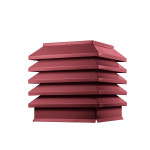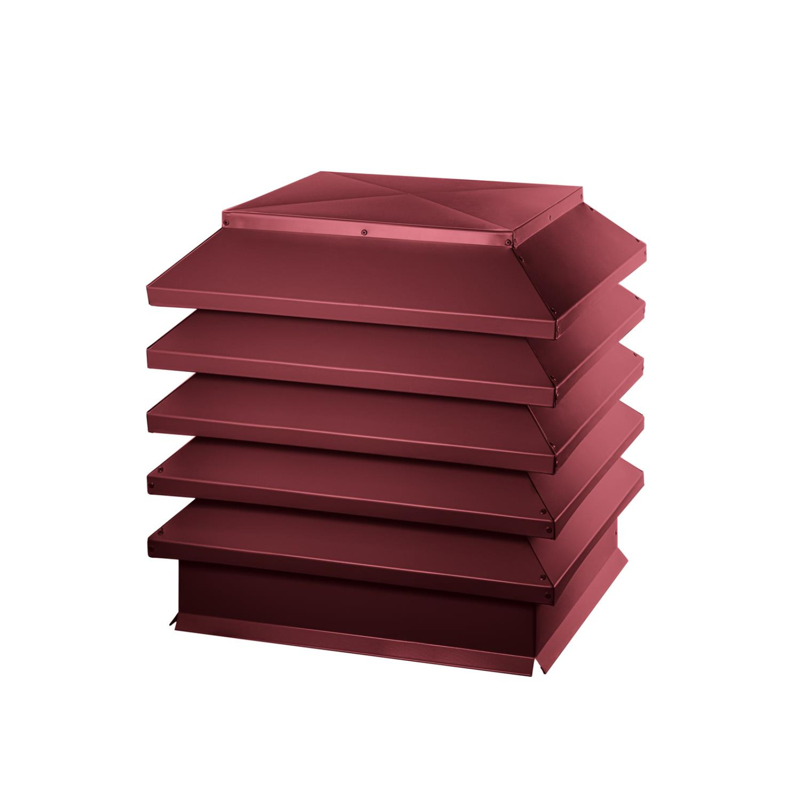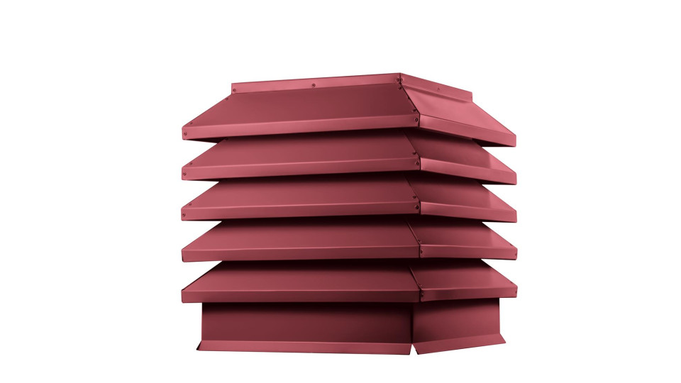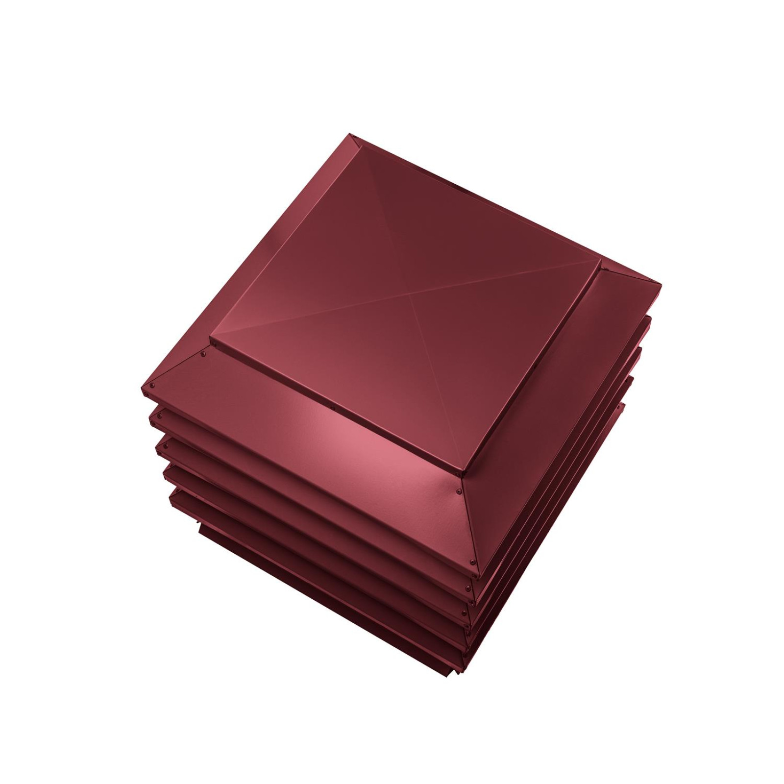 Дымник Модерн размером 390х390 мм в элегантном цвете RAL 3005 «Красное Вино» — это незаменимый элемент для обеспечения надежной работы вашего дымохода и увеличения срока его службы. Его глянцевая поверхность и гладкая текстура придают изделию стильный внешний вид, который украшает крышу и делает её завершённой.