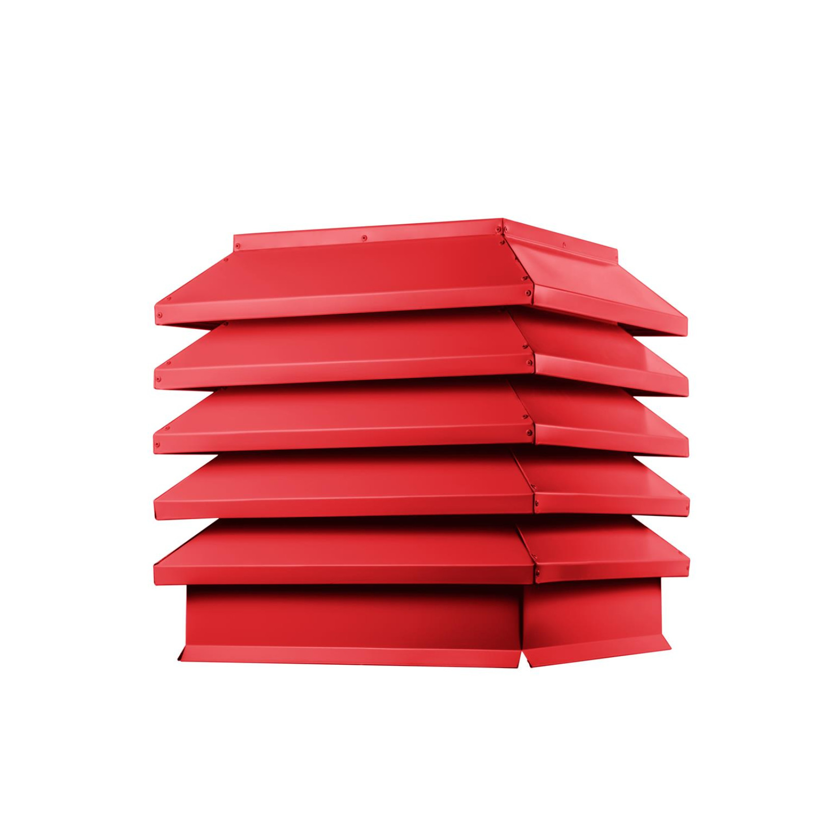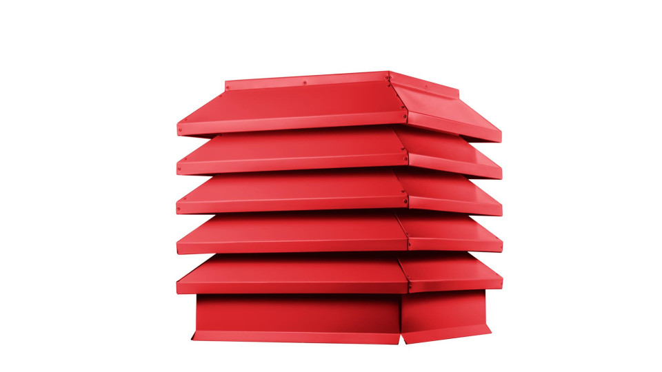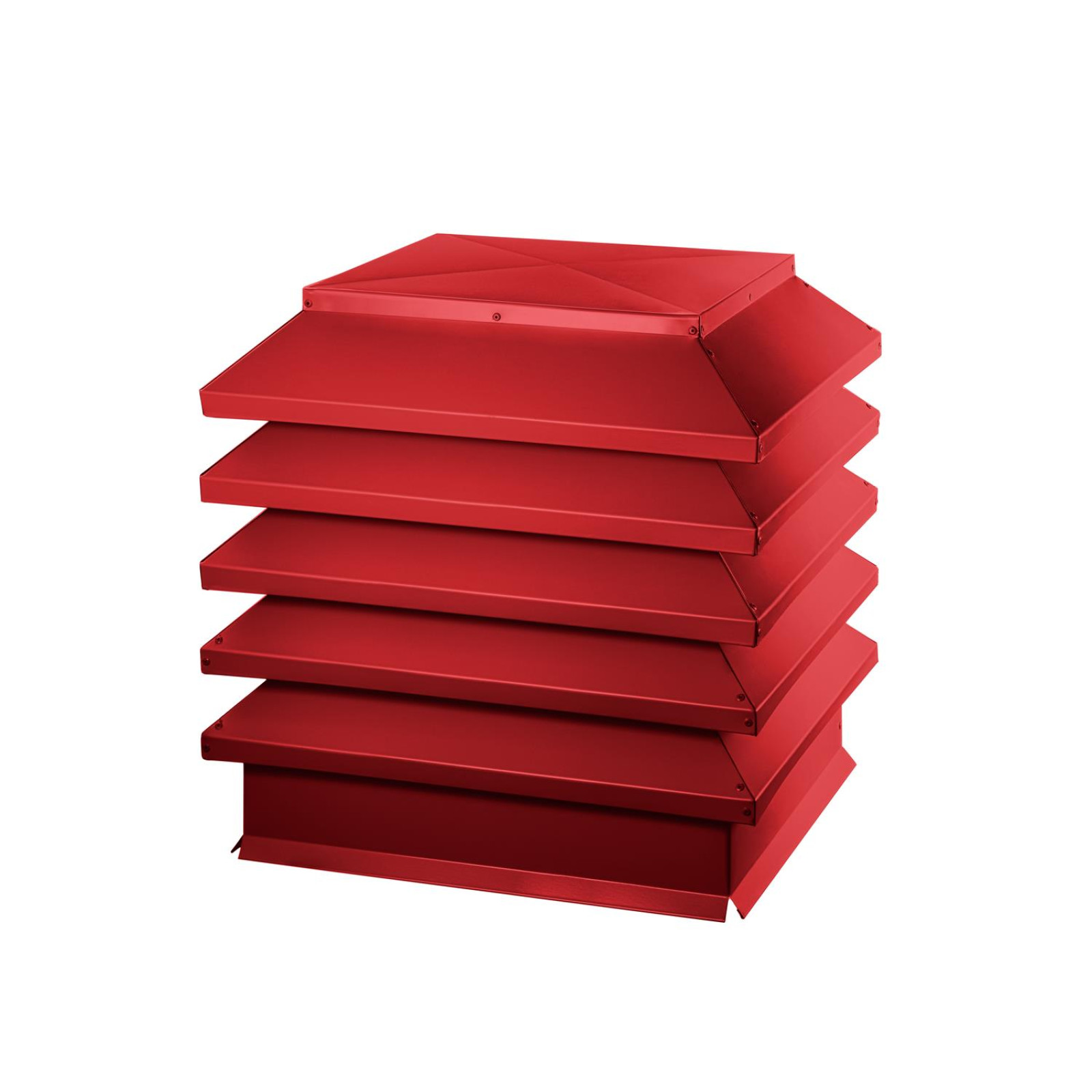 Дымник на трубу Модерн 390х390 мм в цвете RAL 3020 «Транспортный красный» — это не просто декоративный элемент, а рабочая деталь кровельной системы, которая защищает оголовок кирпичной или блочной трубы от осадков, мусора и разрушения, одновременно задавая яркий акцент на фасаде дома.