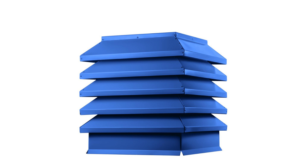 Дымник на трубу «Модерн» 390х390 мм в цвете RAL 5005 — это готовое решение для тех, кто хочет не просто закрыть оголовок дымохода или вентиляционной шахты, а аккуратно завершить кровлю в современном стиле и продлить срок службы трубы. Конструкция из оцинкованной стали с полимерным покрытием защищает канал от осадков, мусора и птиц, снижает риск разрушения кладки и помогает сохранить стабильную тягу даже в сложных погодных условиях.