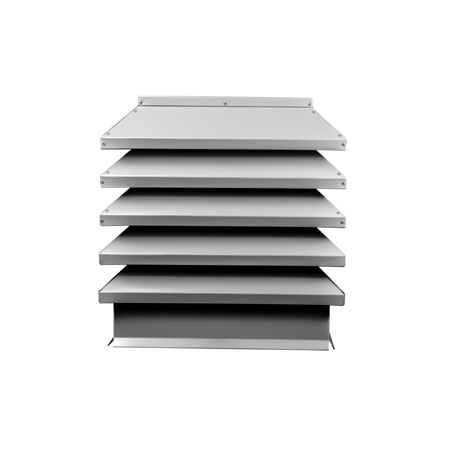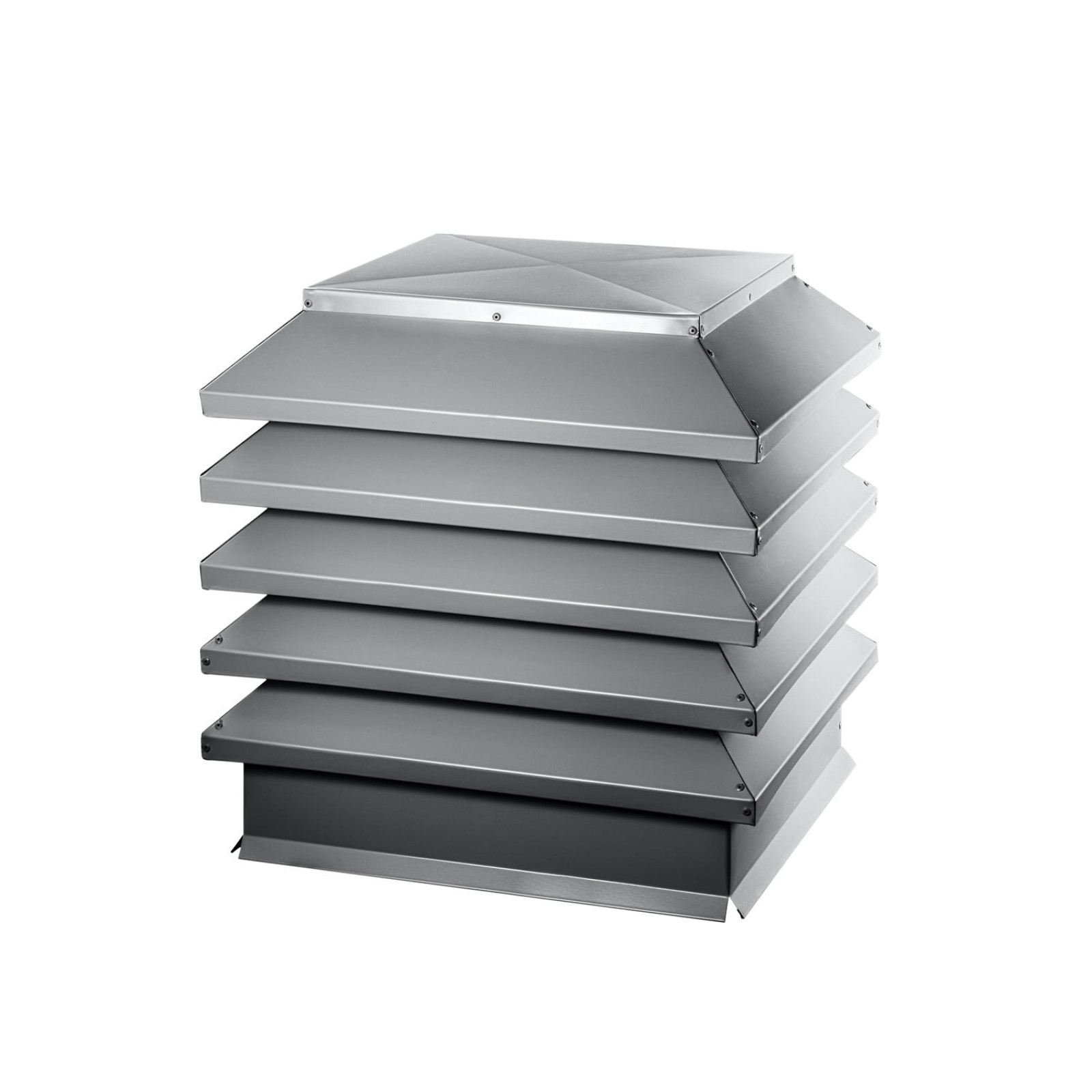 Данный товар доступен в размере 390?390 мм, что соответствует стандартному размеру кирпичных дымоходов, но может быть заказан и под другие размеры. Цвет RAL 7004 «Сигнальный серый» — это универсальный оттенок, который хорошо сочетается с кровлей из металлопрофиля, фальца, битумной черепицы и бетонных материалов. При необходимости производитель может изготовить дымник в любом другом цвете из палитры RAL или с другим полимерным покрытием (PE, Satin, Velur, Pural и т.д.).