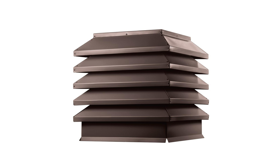 Цвет RAL 8017 «шоколадно-коричневый» — один из самых популярных на рынке кровельных и фасадных материалов, он хорошо сочетается с коричневой металлочерепицей, водостоками и доборными элементами в том же оттенке. За счёт глянцевой фактуры покрытие чуть отражает свет, визуально освежая тёмный цвет и помогая дымнику слиться с кровлей или аккуратно подчеркнуть кирпичную трубу.