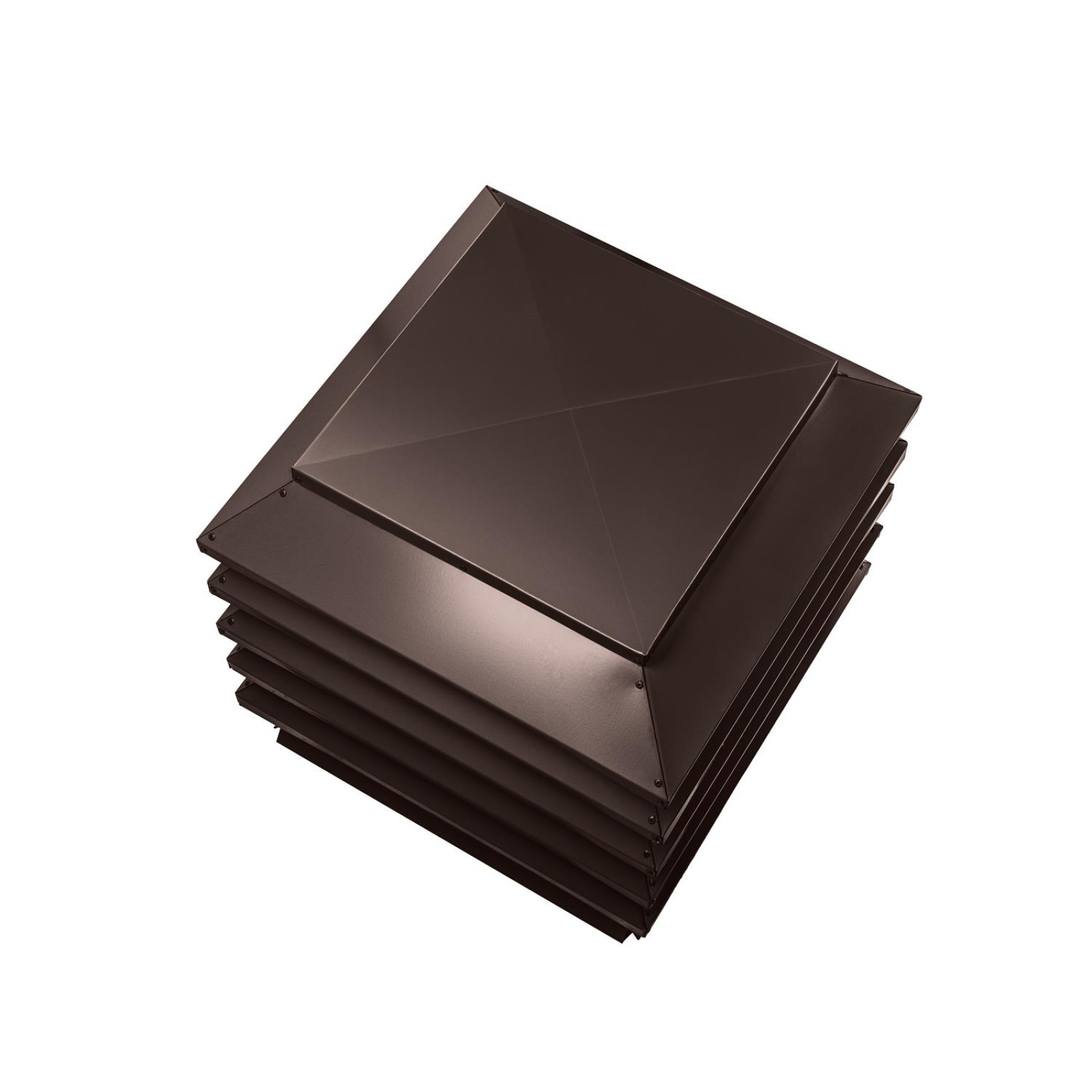Дымник на трубу «Модерн» 390?390 мм RAL 8017 — аккуратный, плоский колпак для кирпичной трубы, который защищает дымоход от осадков и мусора и одновременно поддерживает современный стиль кровли.