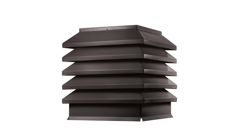 Дымник на трубу Модерн 390х390мм RR 32 МАТОВЫЙ Темный шоколад — это надежное защитное изделие, которое предотвращает попадание осадков, мусора, насекомых и птиц в дымоход, а также увеличивает эффективность работы вентиляционных и отопительных систем для частных домов и коттеджей.