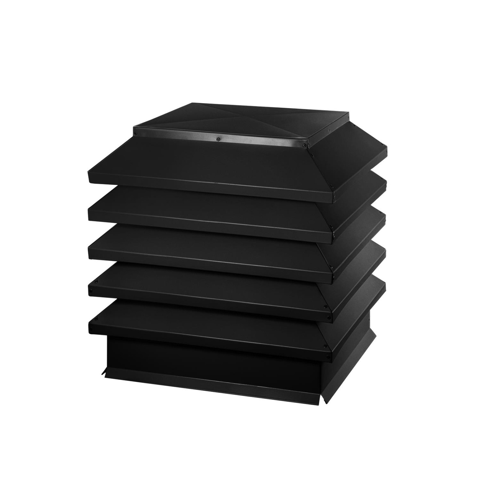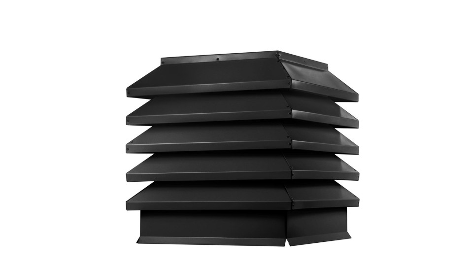 Дымник на трубу Модерн размером 390х520 мм в матовом черном цвете RAL 9005 — это качественный и функциональный элемент, который предназначен для защиты дымоходов от внешних факторов и улучшения их работы. Этот дымник прекрасно подходит для домов в стиле хай-тек и современных построек, благодаря лаконичному дизайну и нейтральному матовому покрытию, которое гармонирует с разными фасадами и кровельными материалами.