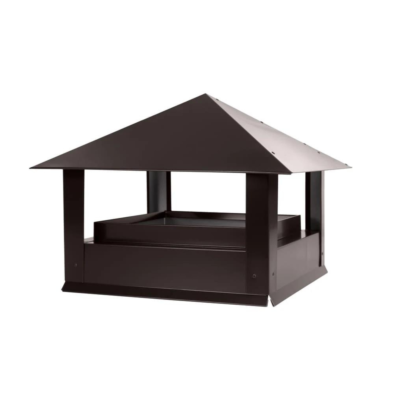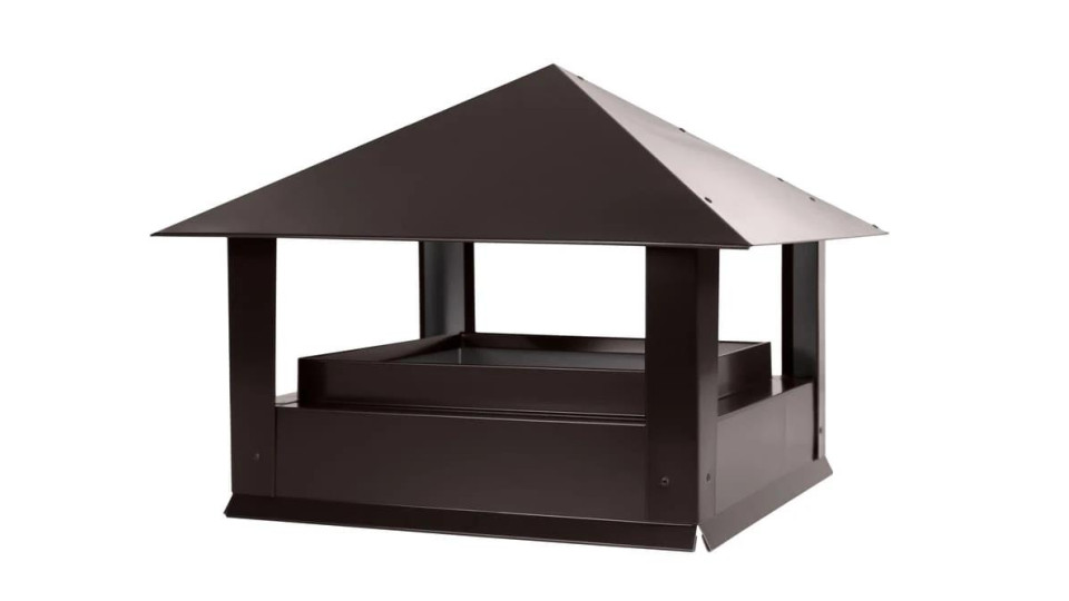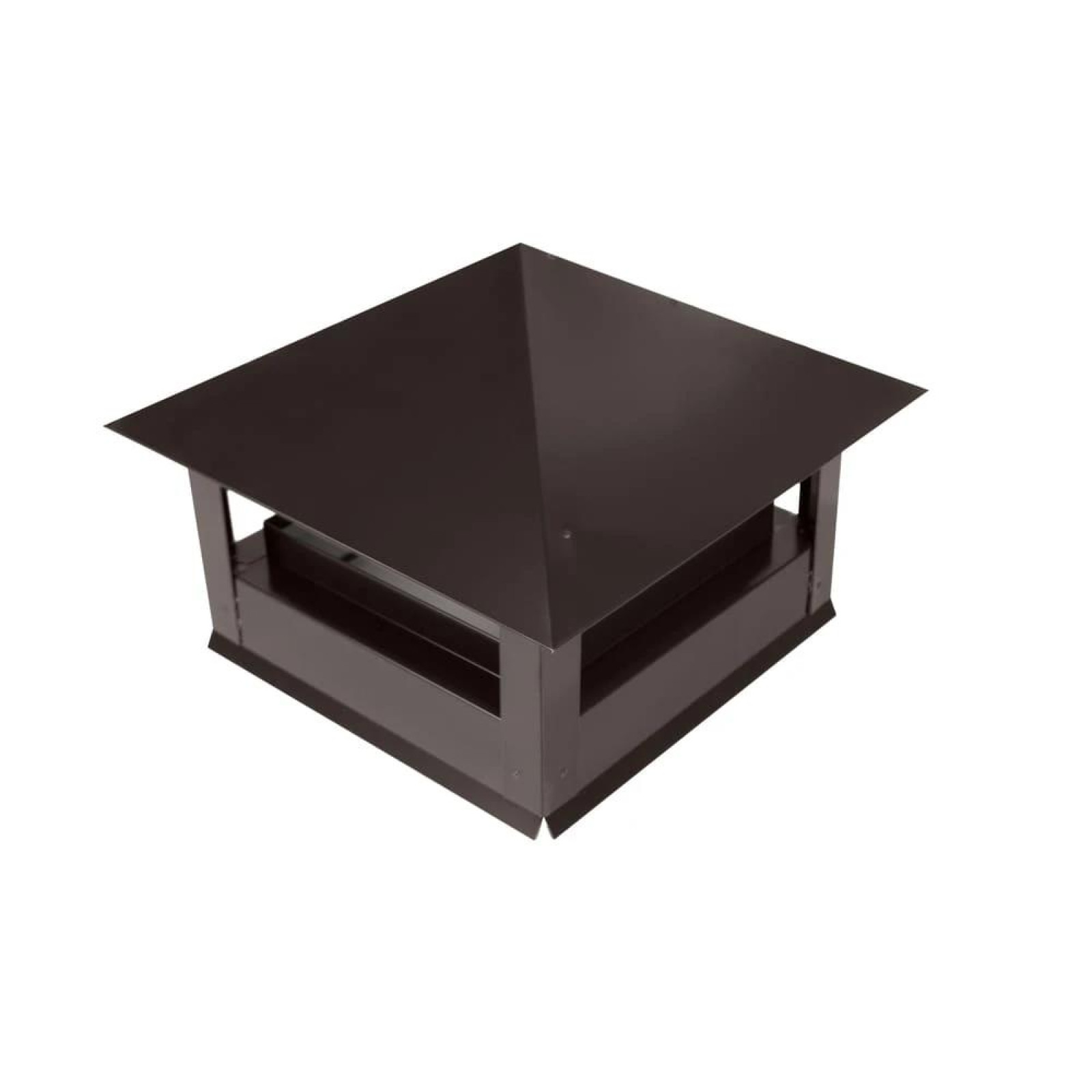 Дымник на трубу Стандарт 390х520мм RAL 8019 Темно?коричневый рассчитан на типовую кирпичную трубу и закрывает ее оголовок с запасом по периметру, защищая от дождя, снега и мусора и одновременно сохраняя тягу в дымоходе.