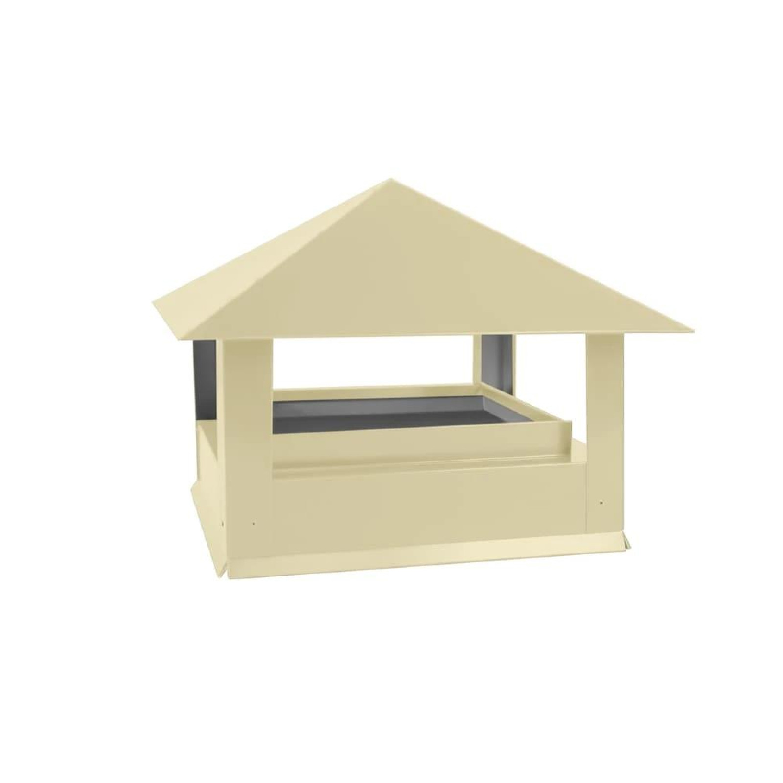 Для частных домов RAL 1014 часто выбирают владельцы, которые хотят визуально облегчить крышу и добавить дому «тёплый» загородный характер вместо контрастных тёмных акцентов. На светлых стенах такой дымник выглядит деликатно, не перетягивая внимание на трубу, а на более тёмной кровле работает как аккуратная светлая деталь, подчеркивающая геометрию дымохода.