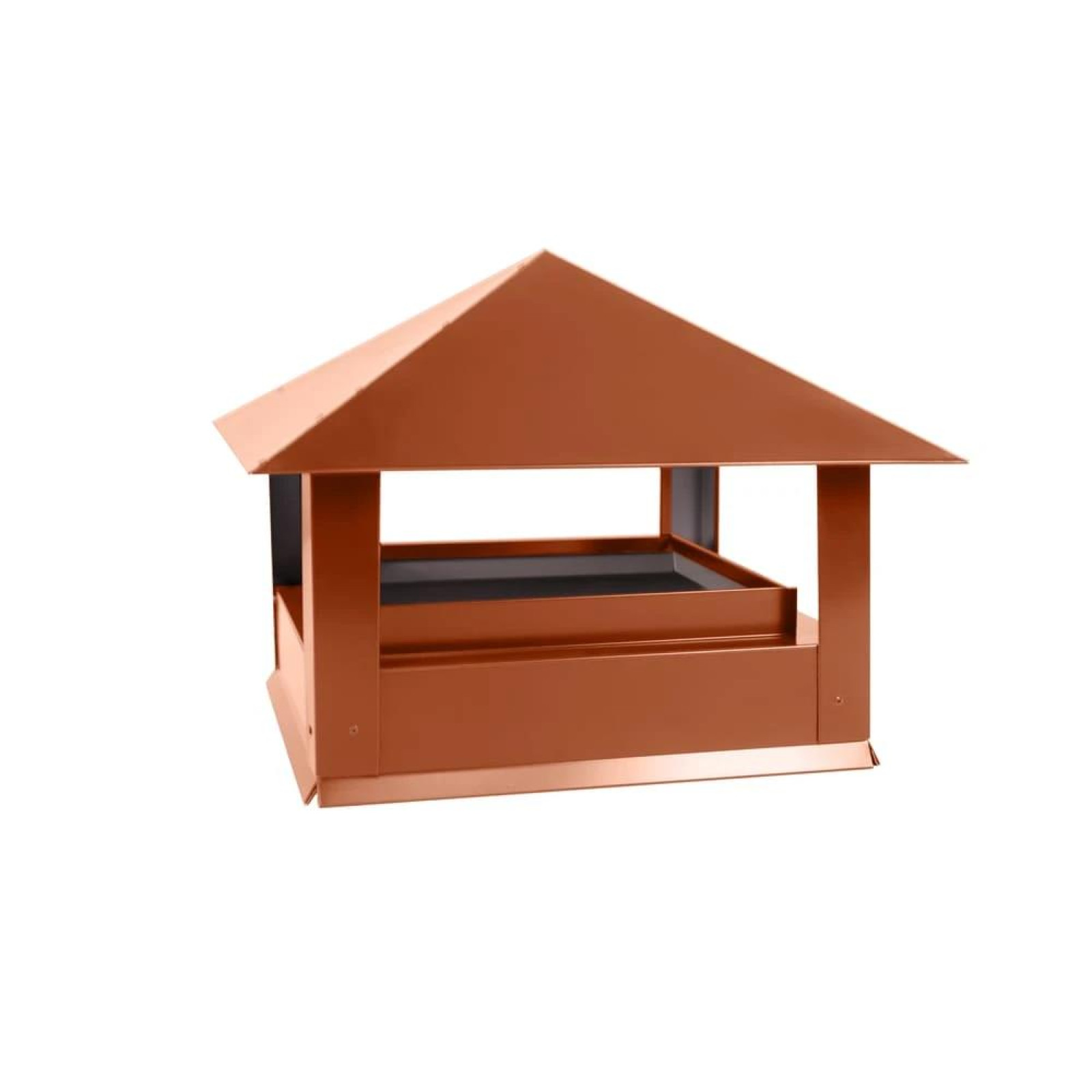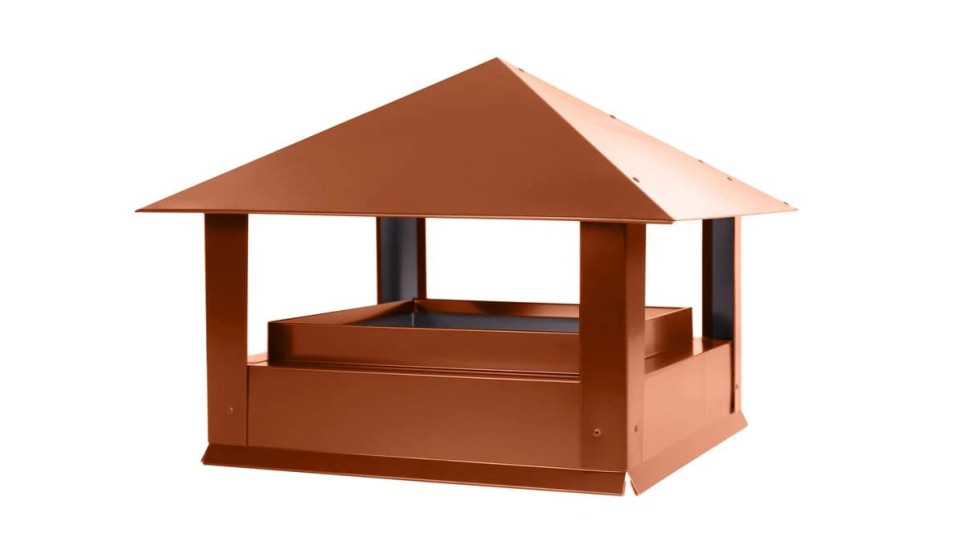 Дымник на трубу Стандарт 510х510мм RAL 8004 Терракот — это надежное решение для владельцев загородных домов, дач и профессиональных строителей, которые хотят защитить дымоход от атмосферных осадков и посторонних предметов, одновременно улучшая тягу и сохранять эстетичный внешний вид дома.
