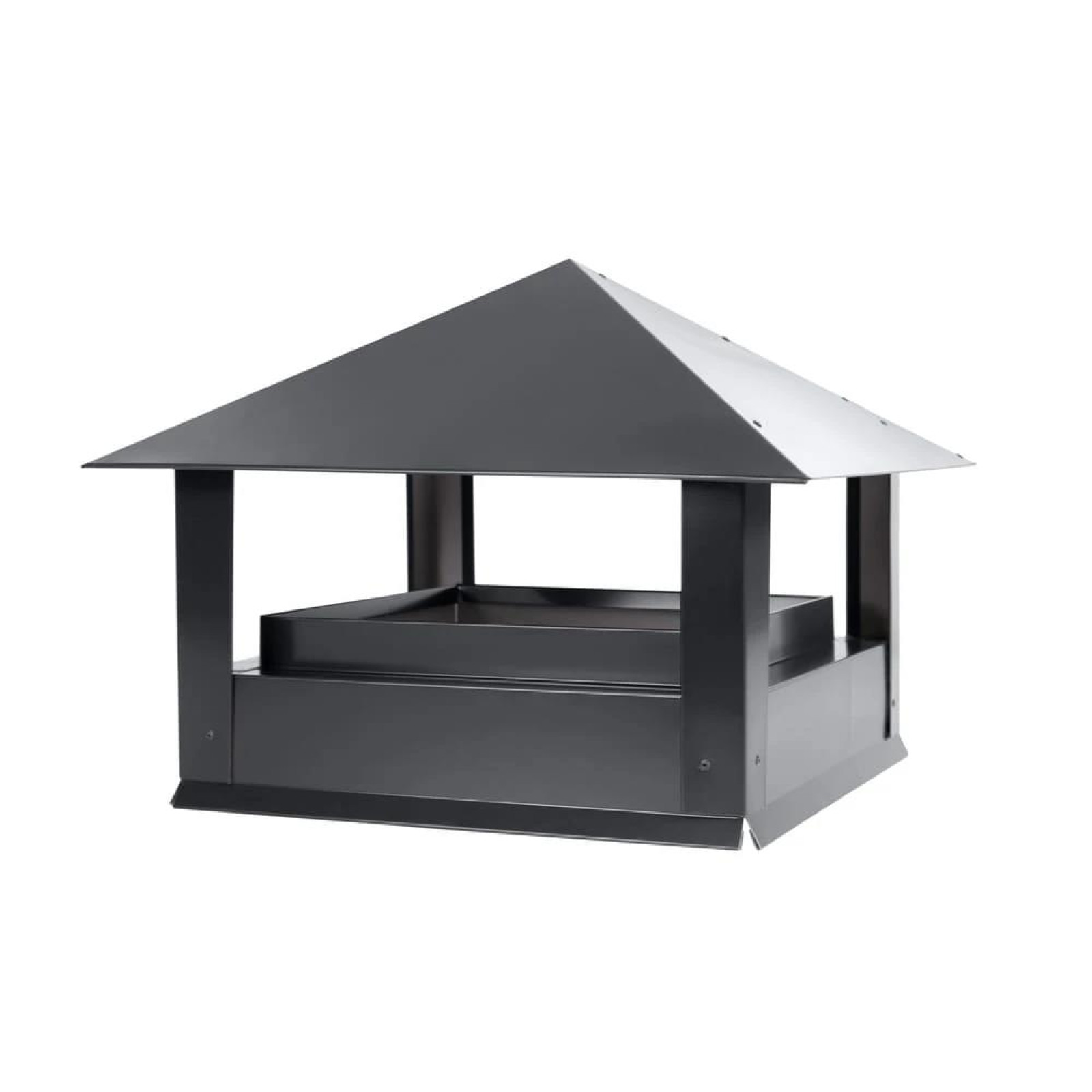 Металлический дымник «Стандарт» 520?520 мм в цвете RAL 7024 Серый графит предназначен для защиты кирпичных дымоходов и вентиляционных каналов от дождя, снега, мусора и птиц, продлевая срок службы кладки и самого канала. Размер 520?520 мм рассчитан под типовой кирпичный дымоход: такой посадочный размер соответствует стандартной кладке трубы, поэтому колпак встает по периметру без подрезок и сложных доработок. Цвет RAL 7024 «серый графит» органично смотрится с популярными оттенками серой и темной кровли, визуально собирая в единое целое крышу, трубу и доборные элементы.