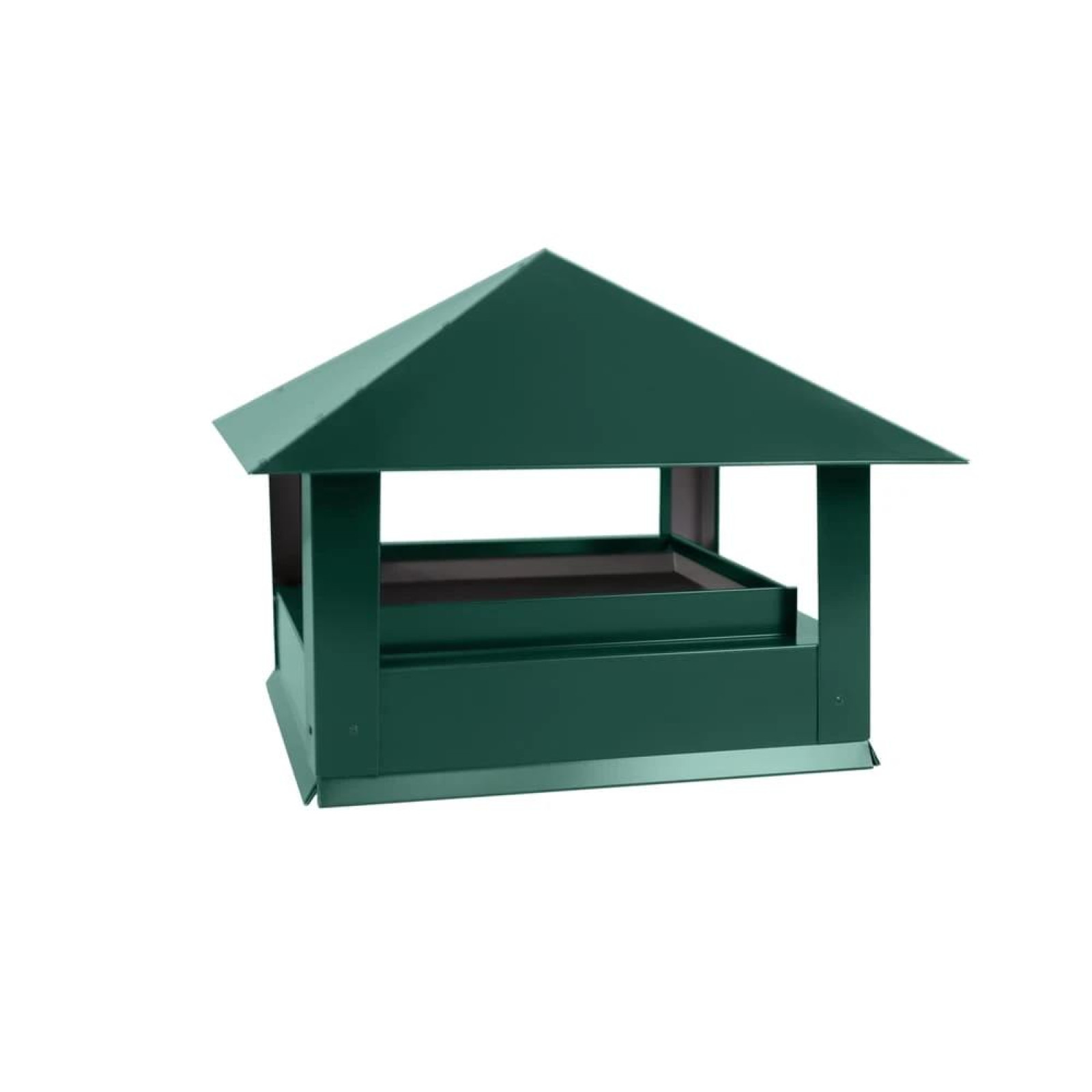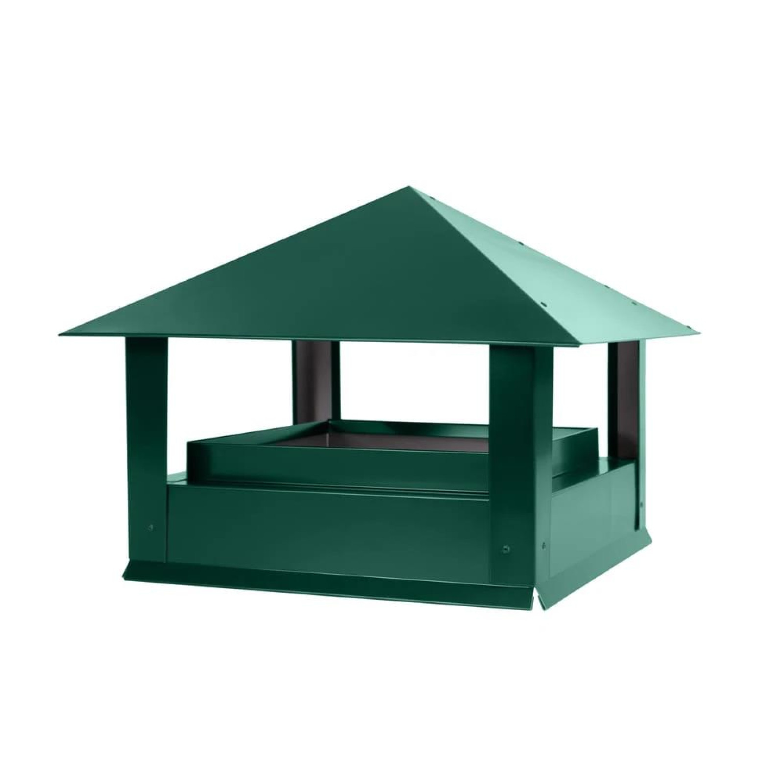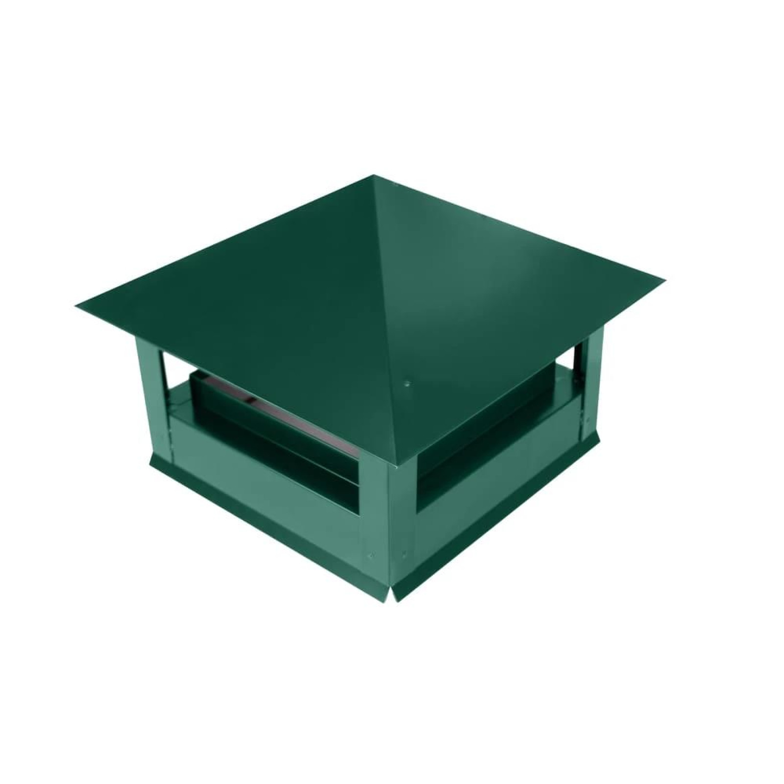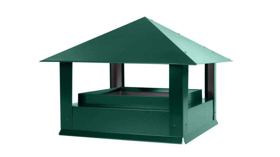 Дымник Стандарт размером 640х640 мм в цвете RAL 6005 "Зеленый мох" предназначен для установки на квадратные печные или вентиляционные трубы, обеспечивая защиту от осадков, мусора и улучшение тяги. Произведен в России брендом Строй Макс из стали с полиэфирным покрытием толщиной 25 мкм и защитным слоем цинка 60-100 г/м, что гарантирует долговечность в суровых климатических условиях. Глянцевая гладкая поверхность с эпоксидной серой обратной стороной упрощает монтаж и уход, делая его идеальным для загородных домов и дач.
