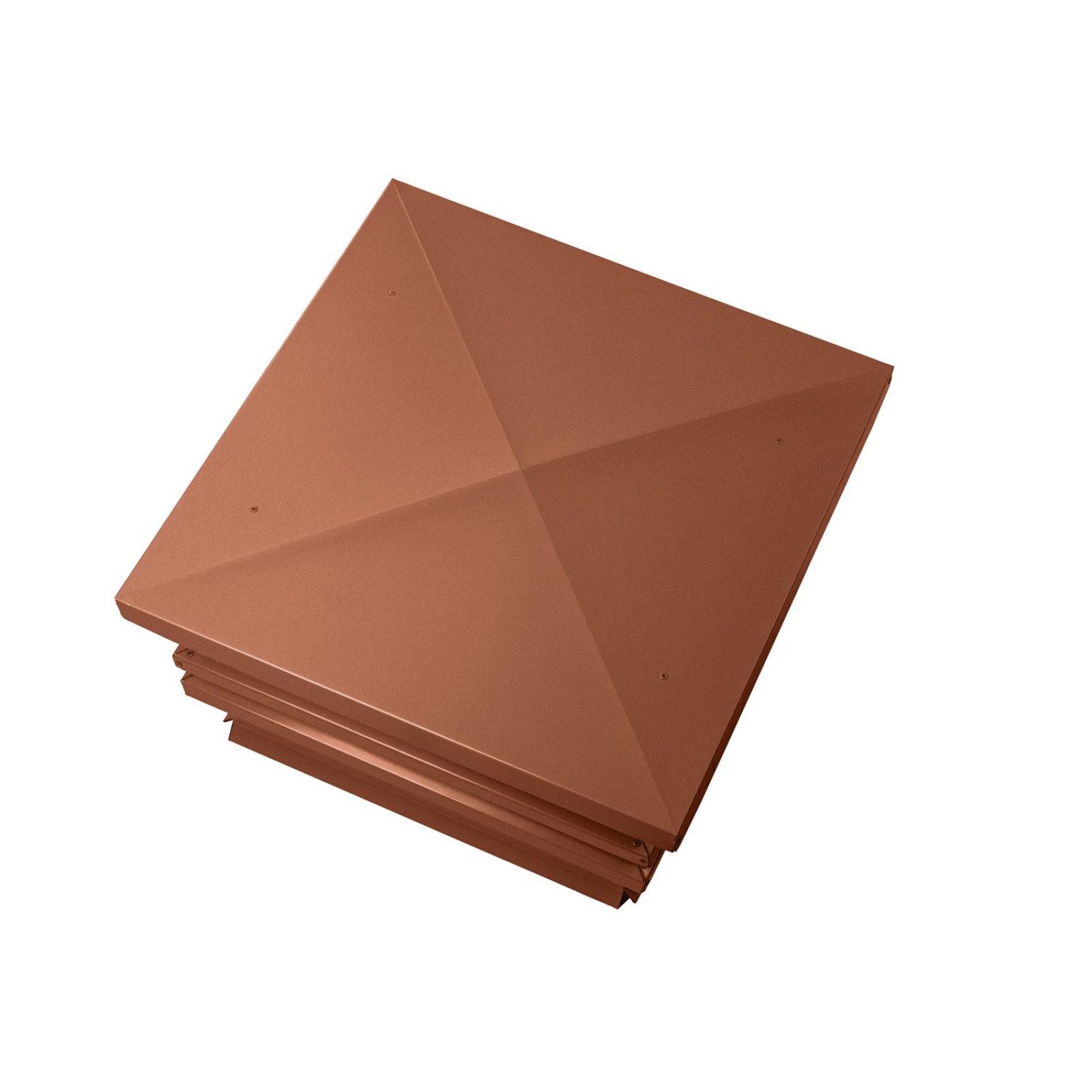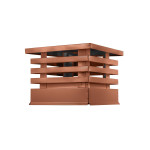 Размер 390х390 мм обеспечивает оптимальное покрытие стандартных дымоходных труб, гарантируя их защиту от дождя, снега и попадания листьев или птиц. Толщина изделия — 0,45 мм, что обеспечивает достаточную прочность, долговечность и устойчивость к ветровым нагрузкам. Покрытие RAL 8004 в матовом терракотовом цвете — это не только защита от коррозии, но и стильный элемент, гармонично сочетающийся с фасадами зданий в теплых оттенках.