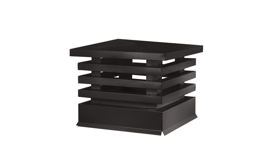 Толщина покрытия дымника составляет 25 мкм с полиэфирным покрытием на глянцевой поверхности цвета RAL 8019 (темно-коричневый). Такое покрытие обеспечивает прочную защиту от коррозии и агрессивных погодных условий. Защитный слой цинка от 60 до 100 г/м гарантирует долгий срок службы и надежную антикоррозийную защиту.