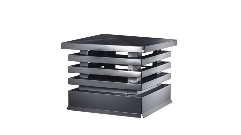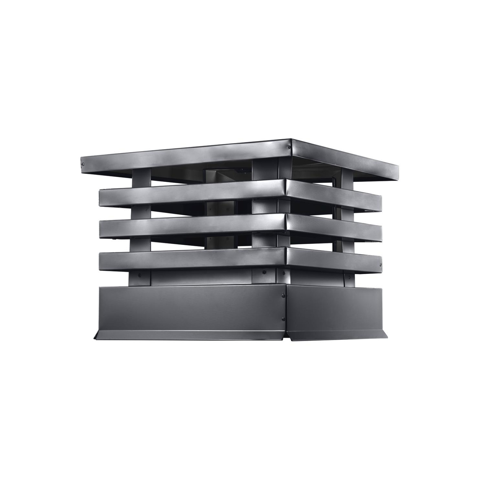 Эпоксидная серая обратная сторона повышает устойчивость к воздействию окружающей среды, а отсутствие данных о стойкости к ультрафиолету компенсируется тем, что оттенок RAL 7024 – нейтральный и не выгорает быстро, что позволяет дымнику сохранять эстетические качества в условиях городской среды.