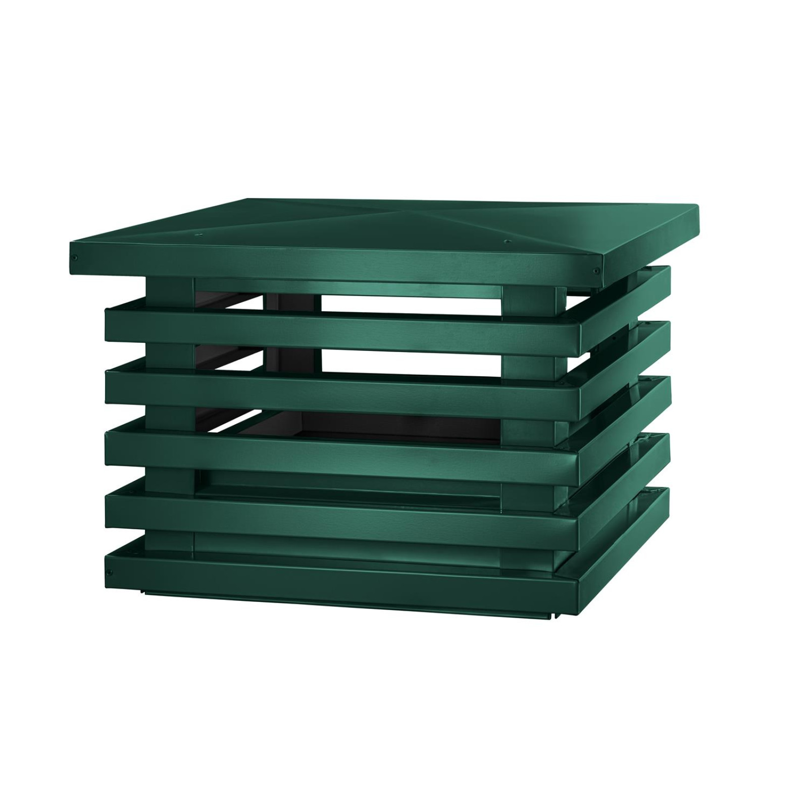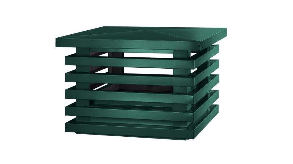 Дымник на трубу Техно Люкс 390х390 мм RAL 6005 Зеленый мох – функциональное и долговечное решение, обеспечивающее надежную защиту и улучшенную тягу для дымоходов и вентиляционных труб в частных домах и коммерческих помещениях.