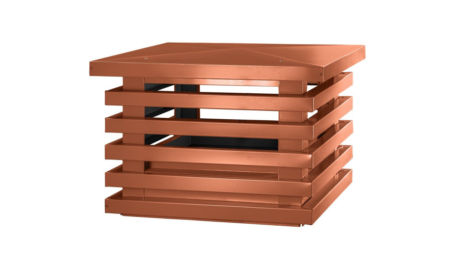 Описание дымника на трубу Техно Люкс 390х390мм RAL 8004 Терракот Дымник на трубу – не просто декоративный элемент, а важная деталь, обеспечивающая защиту дымохода и вентиляционных труб. Основная задача этого изделия – предотвращать попадание дождя, снега, града, пыли, птиц и прочих посторонних предметов в дымоход, что помогает сохранить свободный проход дыма и увеличить безопасность эксплуатации отопительного оборудования. Ключевые характеристики и преимущества - Защитный слой цинка толщиной от 60 до 100 г/м обеспечивает надежную антикоррозийную защиту, что продлевает срок службы изделия минимум на 10 лет.