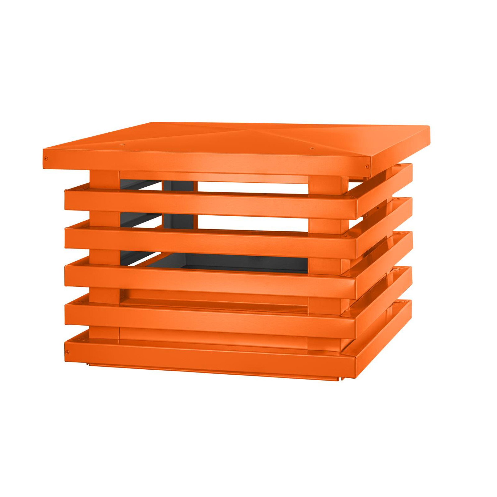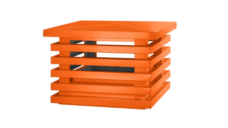Дымник на трубу Техно Люкс 510х510мм RAL 2004 Оранжевый — это готовое решение для защиты кирпичного дымохода от осадков, мусора и разрушения, которое одновременно работает как яркий архитектурный акцент на кровле в современном стиле “техно”.