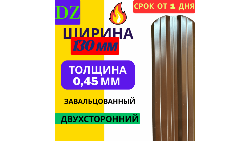 Евроштакетник двухсторонний М образный широкий 130мм Полиэстер 0,45 мм RAL 8017 Коричневый шоколад