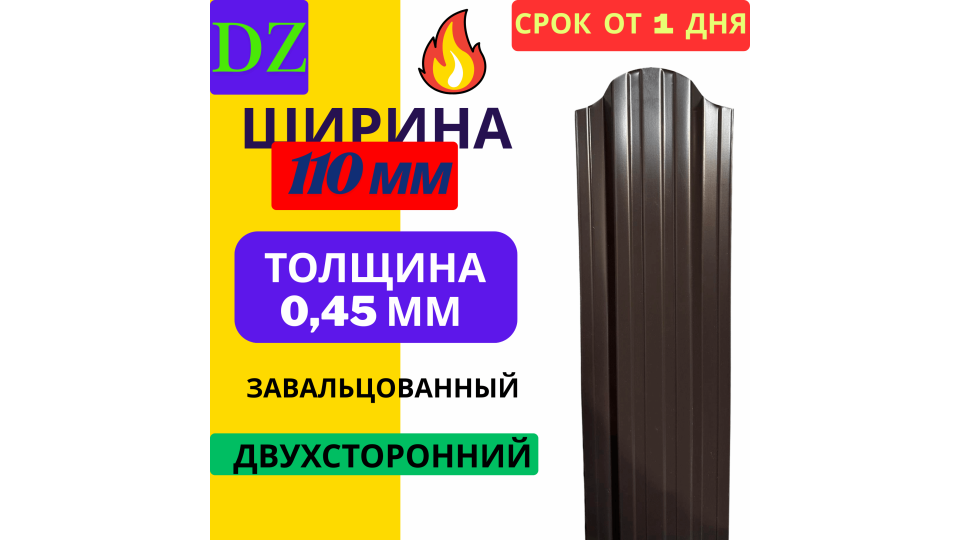 Металлический штакетник коричневого,серого, белого цвета производим от 1 штуки, остальные цвета от 1000 м.п одним заказом или от 1 штуки попутным заказом