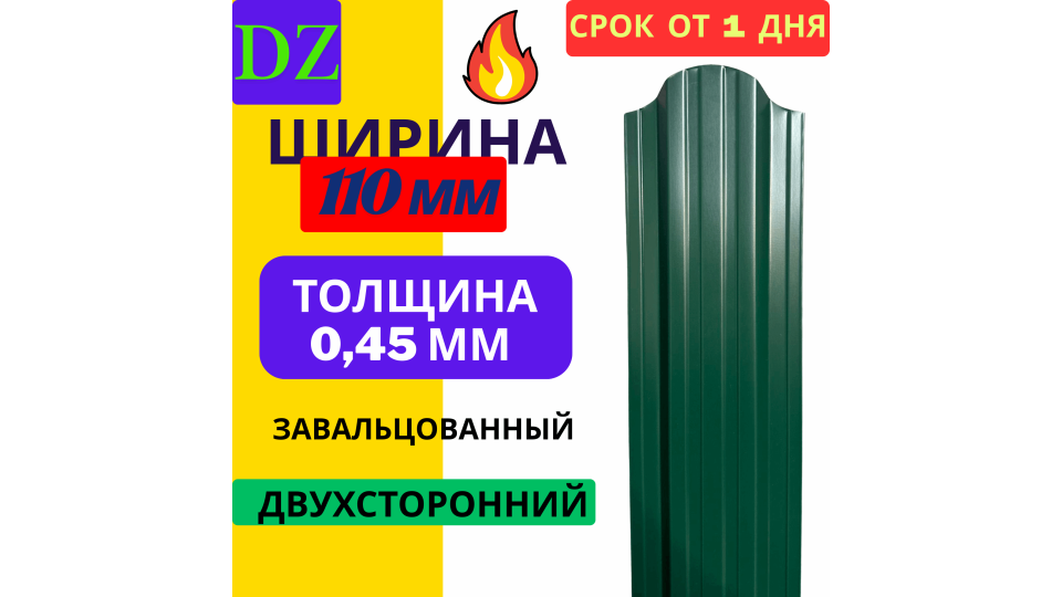 - Покрытие: Двусторонний полиэстер, цвет RAL 6005 (Зеленый мох)