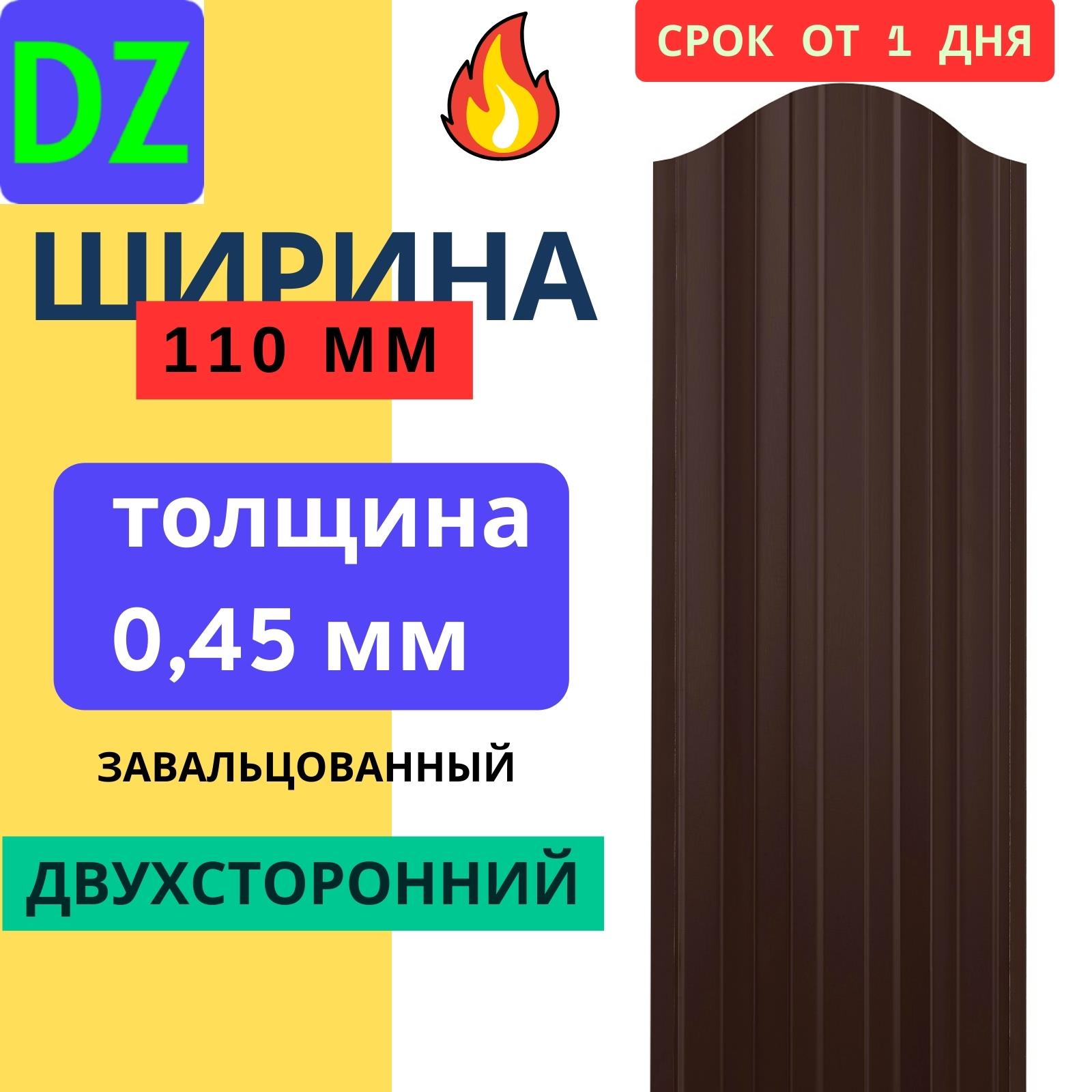 П-образный профиль шириной 110 мм из стали 0,45 мм с двусторонним полиэстерным покрытием 25 мкм RAL 8017 «коричневый шоколад» сочетает глубокий тёплый оттенок с антикоррозионной защитой Zn 100 г/м и гарантией до 15 лет. Замковый срез обеспечивает плотную сборку без щелей, а двусторонняя окраска сохраняет единый «шоколадный» цвет внутри и снаружи.