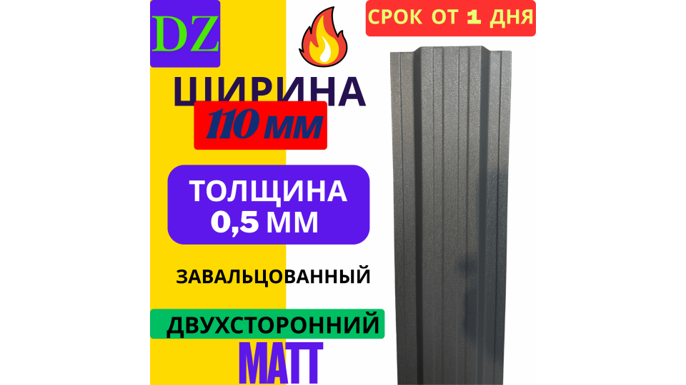 Евроштакетник МАТОВЫЙ двухсторонний П образный 110мм Полиэстер 0,5 мм RAL 7024 Серый графит