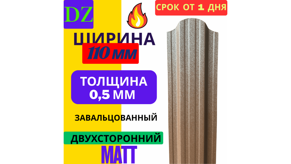 Евроштакетник МАТОВЫЙ двухсторонний П образный 110мм Полиэстер 0,5 мм RAL 8017 Коричневый шоколад