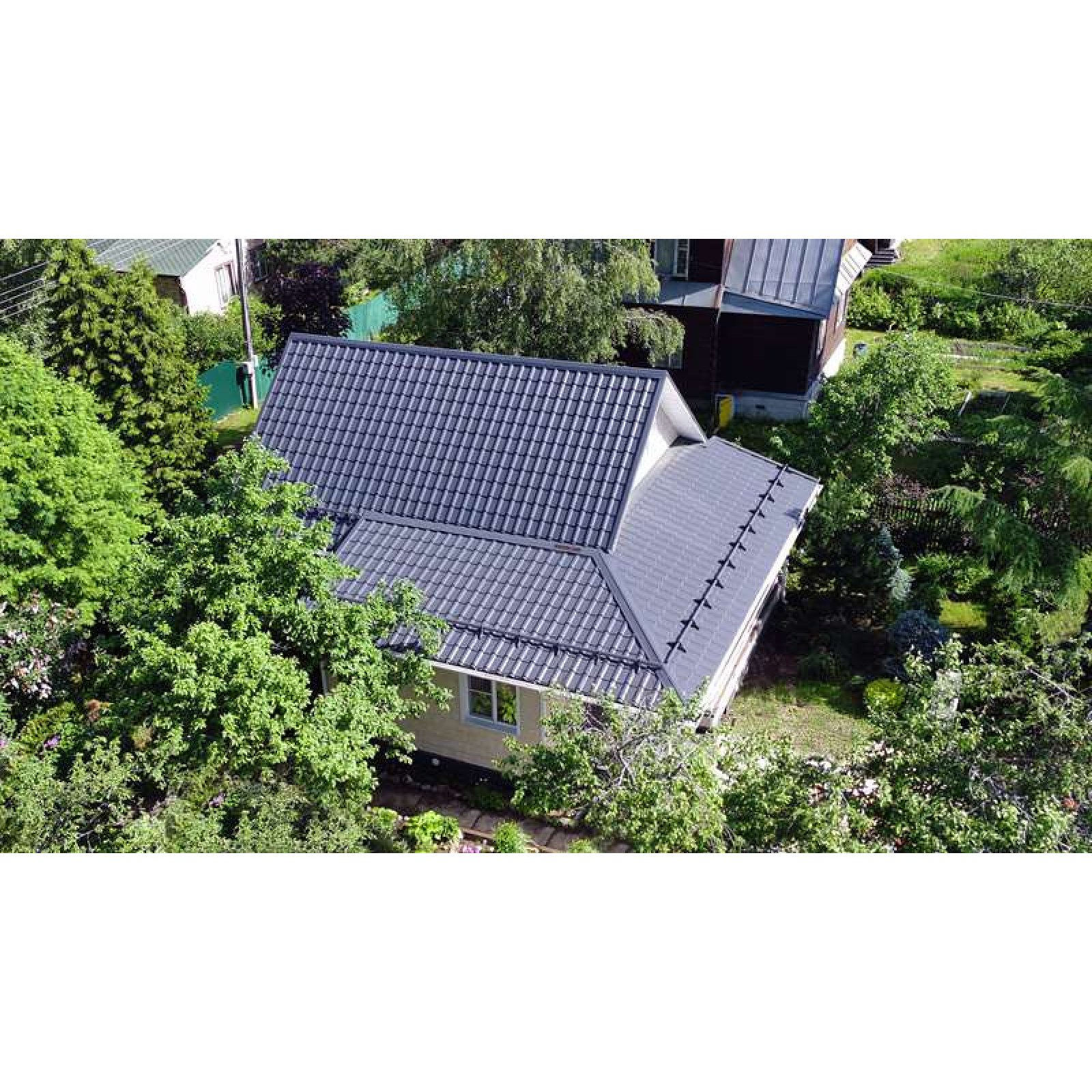 Металлочерепица Kamea v01 0,5 Satin RAL 7024 «Мокрый асфальт» — универсальный выбор для тех, кто стремится к элегантности, долговечности и уверенному современному стилю. Графитовый оттенок «мокрый асфальт» гармонично впишется в архитектуру как жилых, так и коммерческих объектов, делая фасад актуальным вне времени.