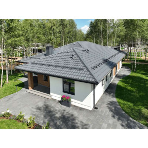 Практичный и современный оттенок Graphite Grey этой металлочерепицы задаёт тон архитектуре как частных коттеджей, так и бизнес-объектов. Инженерная эстетика покрытия Kredo Grand Line идеально впишется в минималистские проекты и подчеркнёт статус владельца, заботясь о надежности кровли в условиях российской зимы.