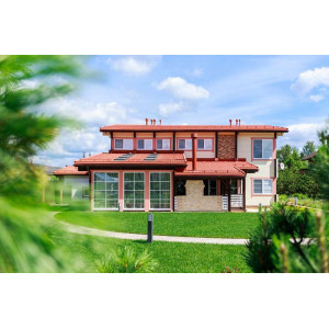 | Classic Grand Line 0,45 PE RAL 8004 | Современный профиль, богатая палитра оттенков терракоты и размеров | Менее выражен объём рельефа, хуже смотрится на домах с наклонными крышами |
