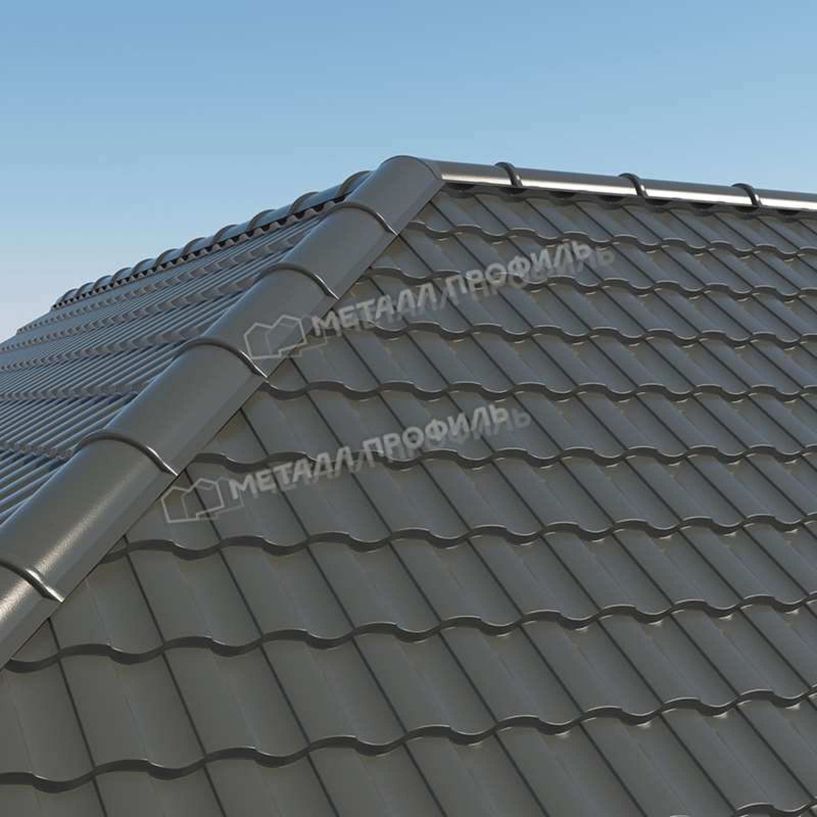 Эта металлочерепица сочетает выразительный дизайн и надежную защиту, подходя для крыш загородных домов и построек. Темно-серый оттенок RR23 добавляет глубины и солидности фасаду, словно тень густого леса.