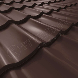 Эта металлочерепица сочетает плавные волны с оттенком темного шоколада, создавая эффект натуральной кровли, и подходит для крыш от уютных дач до стильных веранд, добавляя нотку комфорта и элегантности в окружающий ландшафт.