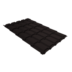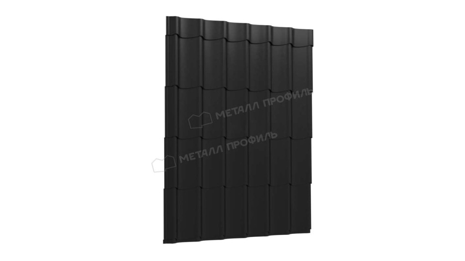 Глянцевая поверхность и полиэстерное покрытие делают эту металлочерепицу не только прочной, но и эстетичной. Цветовой оттенок черного RAL 9005 добавит красоты и элегантности вашему дому.