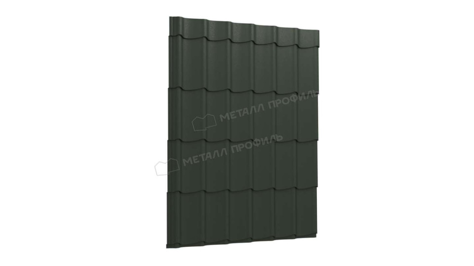 Эта металлочерепица сочетает мягкие волны с оттенком бутылочного стекла в лесу, имитируя натуральную черепицу, и идеально вписывается в крыши от экологичных коттеджей до парковых павильонов, подчеркивая связь с природой через свежий, глубокий цвет.