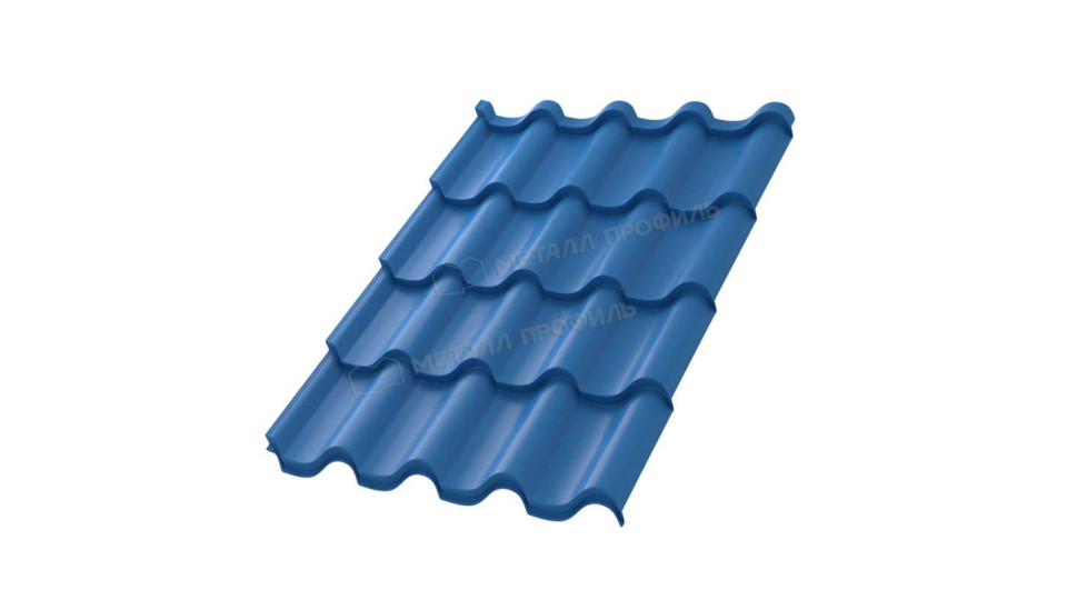 Эта металлочерепица имеет одностороннее покрытие с защитным слоем цинка и стойкость к ультрафиолету класса RUV3. С ее текстурой поверхности и цветовым оттенком синего неба по каталогу RAL 5015, она прекрасно впишется в любой архитектурный стиль.
