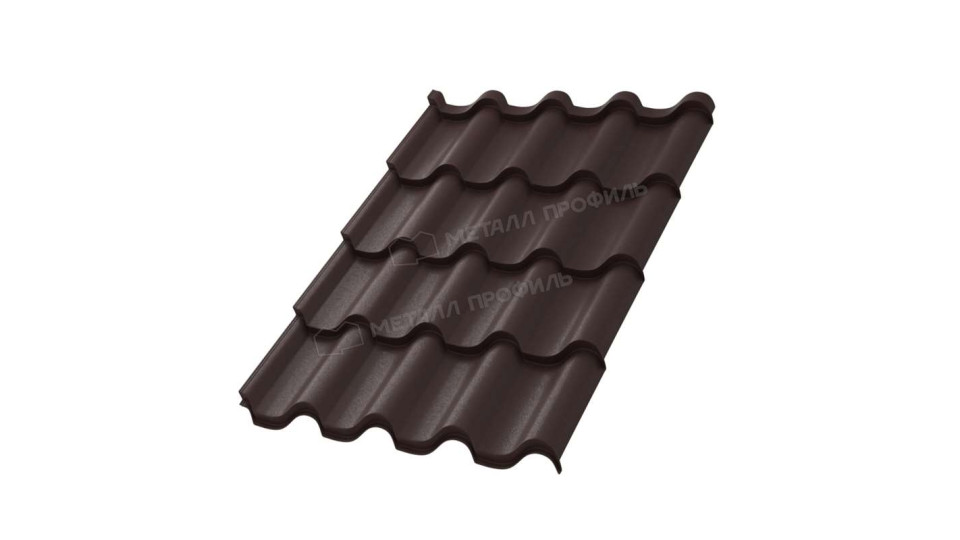 Металлочерепица Металл Профиль Монтерроса XL VikingMP E 20 RAL 8019 серо-коричневый 0.5 мм - это качественное и надежное покрытие для вашей кровли. Произведенная компанией Металл Профиль, она имеет матовую поверхность, что придает ей элегантный и современный вид.