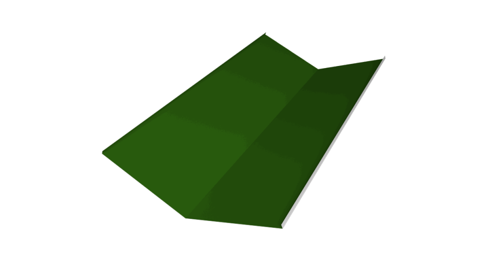 Цвет планки соответствует стандарту RAL 6002 (лиственно-зеленый), что позволяет подобрать совместимые элементы кровли или фасада в аналогичной цветовой гамме для гармоничного вида.