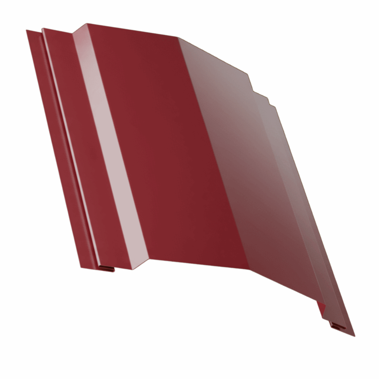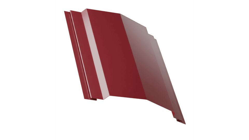 Минимальная длина изделий всего 0,2 метра, что упрощает транспортировку и монтаж. Обратная сторона планки покрыта эпоксидной серой краской, которая улучшает адгезию и дополнительную защиту металла. Эта планка обладает гладкой текстурой, что делает её привлекательной и в сочетании с насыщенным цветом "Красное вино" позволяет гармонично вписать её в любой фасад или кровлю, выполненную из сэндвич панелей.