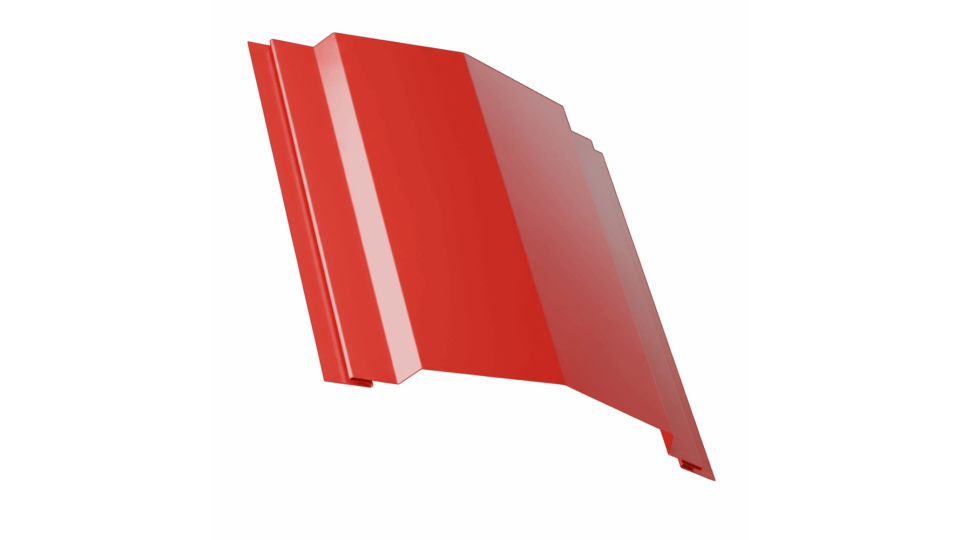 Планка конька толщиной 0,45 мм в цвете RAL 3020 транспортный красный завершает монтаж кровли из сэндвич-панелей, обеспечивая герметичность и эстетику на стыках. Производства России бренда Строй Макс, она сочетает глянцевую гладкую поверхность с полиэфирным покрытием PE, что гарантирует долговечность в суровых условиях. Минимальная длина 0,2 м позволяет точно подогнать элемент под любой скат.