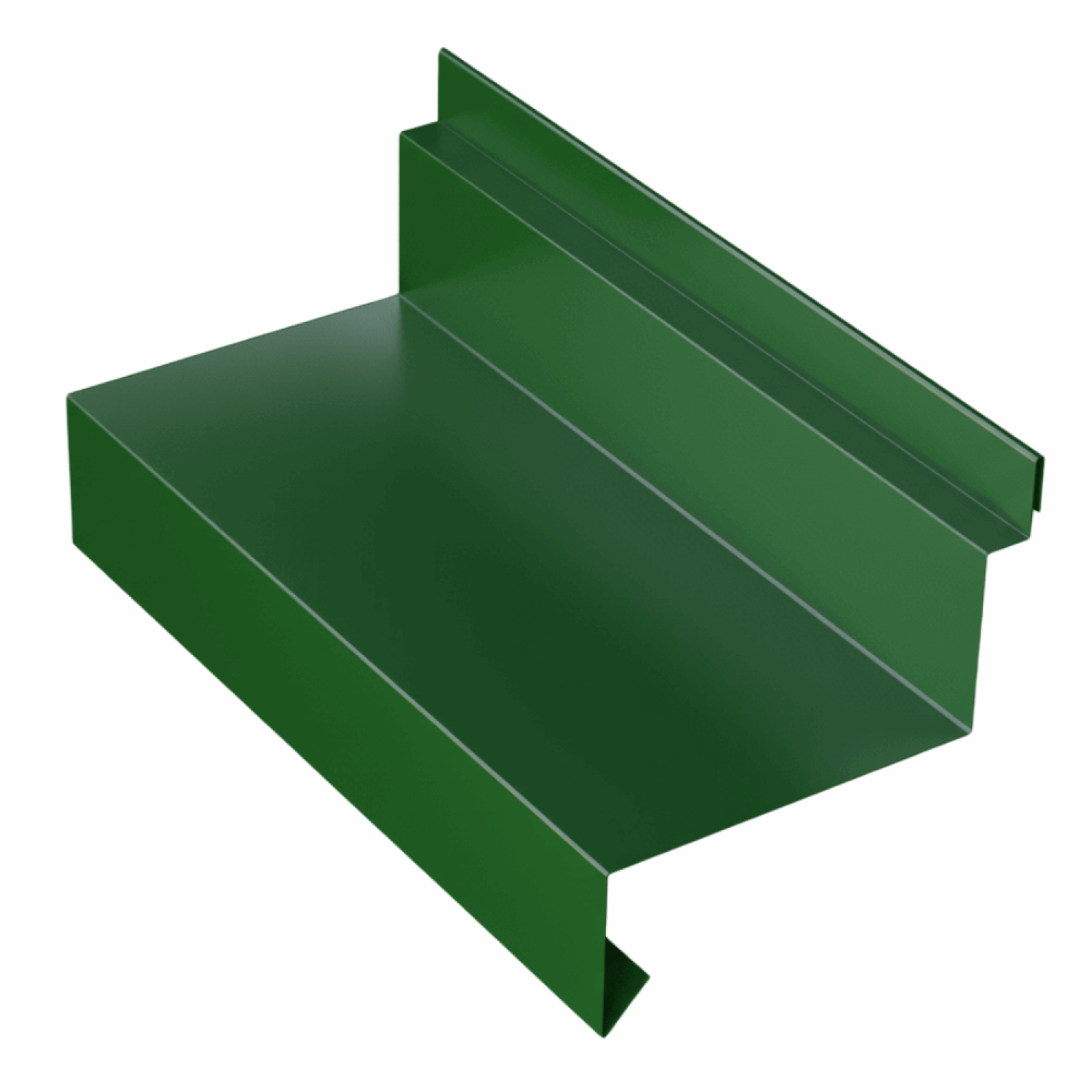 Эта планка отлива предназначена для надежной защиты нижней части сэндвич-панелей от влаги и грязи, обеспечивая долговечность фасада в зонах с высокой влажностью. Толщина металла 0,45 мм сочетается с полиэфирным покрытием PE и цветом RAL 6005 "зеленый мох", который идеально вписывается в природные оттенки современных строений. Производится в России с защитным слоем цинка 60-100 г/м, что гарантирует устойчивость к коррозии.