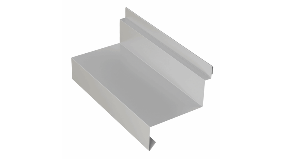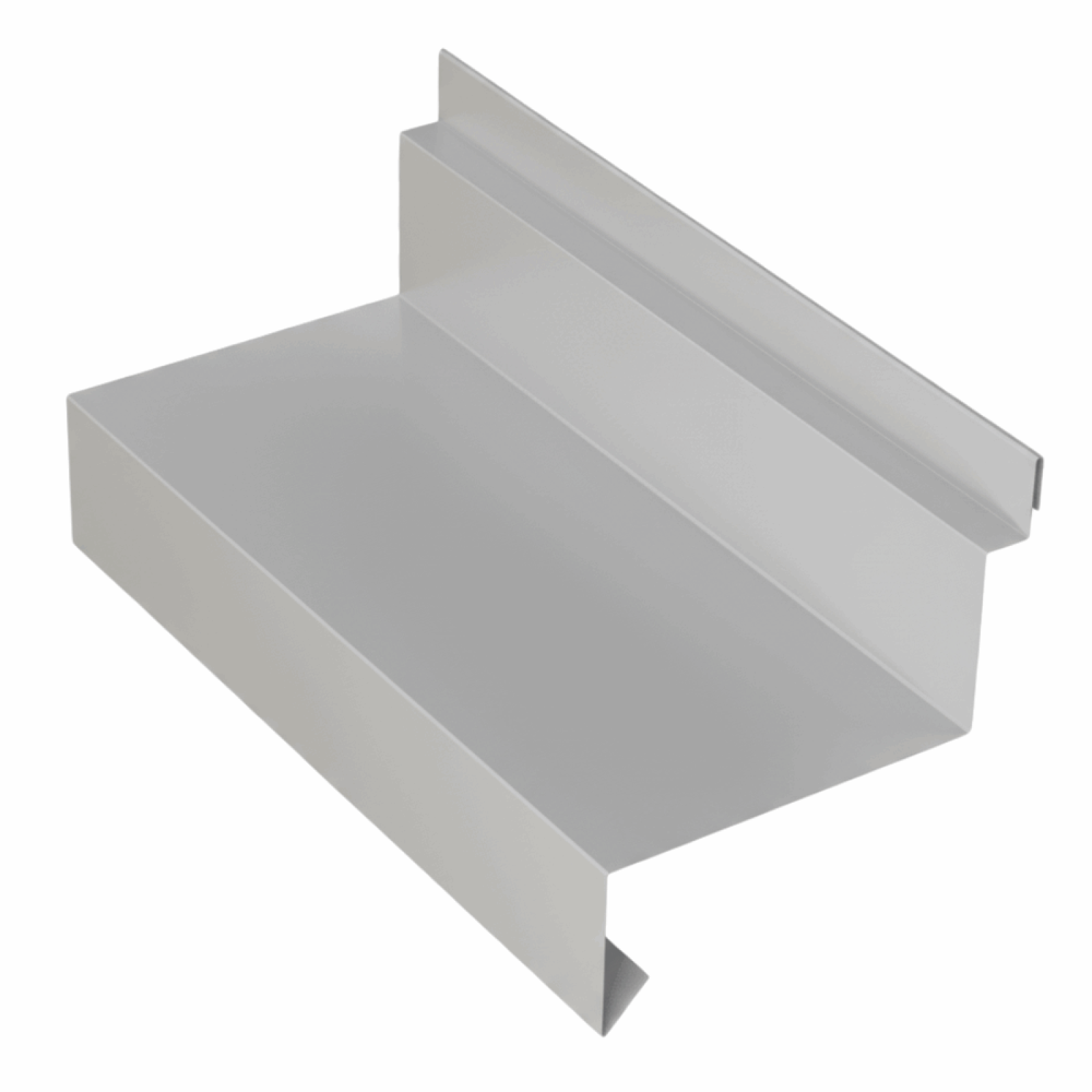 Глянцевая, гладкая поверхность и серо-белый цвет по каталогу RAL 9002 — одно из самых распространенных решений для стеновых сэндвич-панелей и фасадных доборов в складских и производственных зданиях. За счет этого планка органично стыкуется с большинством типовых панелей и не «режет» глаз ни заказчику, ни технадзору: низ фасада выглядит ровным, собранным и визуально легким.