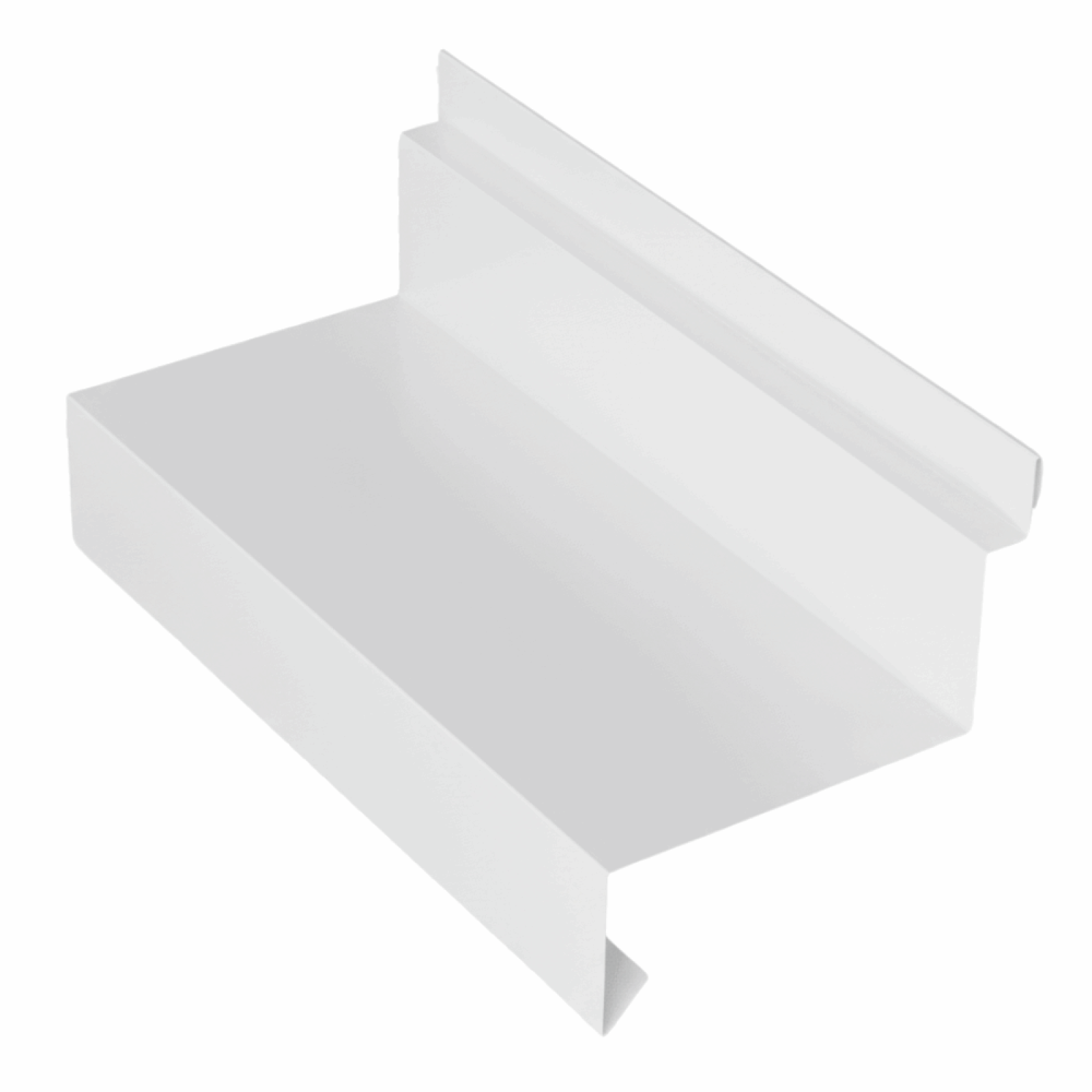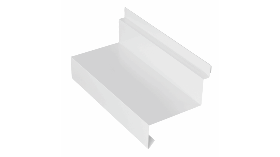 Планка отлива цокольного для сэндвич-панелей 0,45 PE RAL 9003 сигнальный белый — это надежный строительный элемент, предназначенный для защиты цоколя зданий и фасадов из сэндвич-панелей от влаги и механических повреждений.